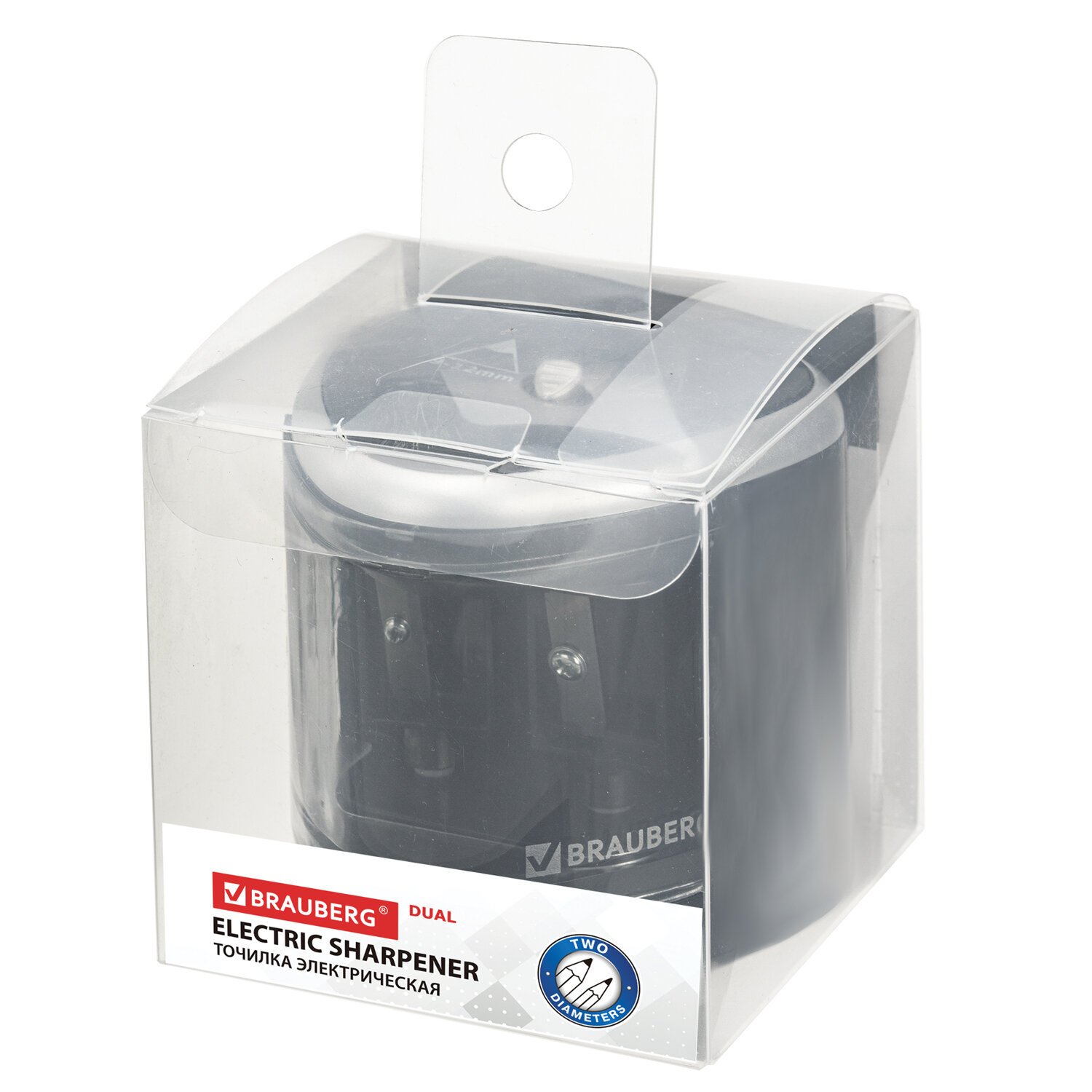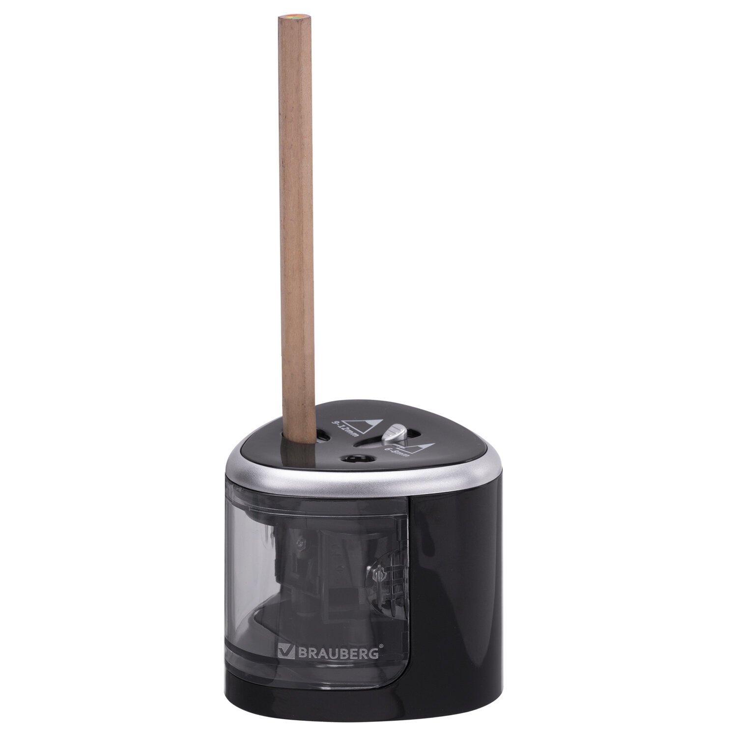 Точилка электрическая BRAUBERG DUAL (для 2 диаметров карандашей!), 4 батарейки АА, черная, 270581