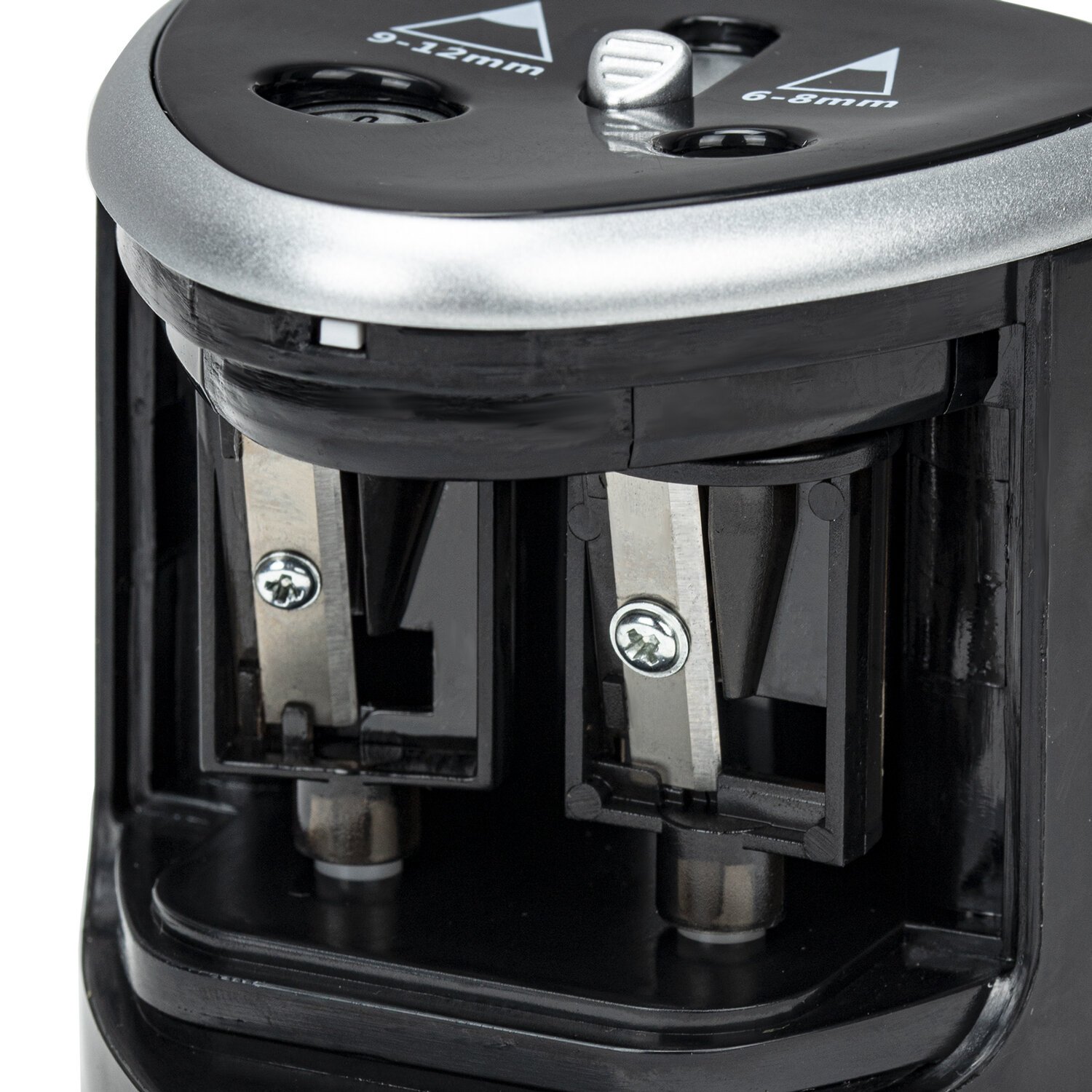 Стильный корпус точилки, выполненный из ударопрочного пластика, позволит ей стать интересной деталью любого интерьера, а прочное прямое лезвие осуществляет острую и быструю заточку любых деревянных и пластиковых карандашей. Подходит как для чернографитных, так и для цветных карандашей. Точилка имеет два отверстия для карандашей диаметром 6-8 мм и 9-12 мм, а также оснащена предохранительным клапаном. Помимо прочего, обладает противоскользящим основанием. Механизм приходит в движение при помощи электричества от 4 батареек АА (в комплект не входят). Затачивание начинается автоматически после помещения карандаша внутрь точилки, и через несколько секунд карандаш идеально заточен и готов к использованию.