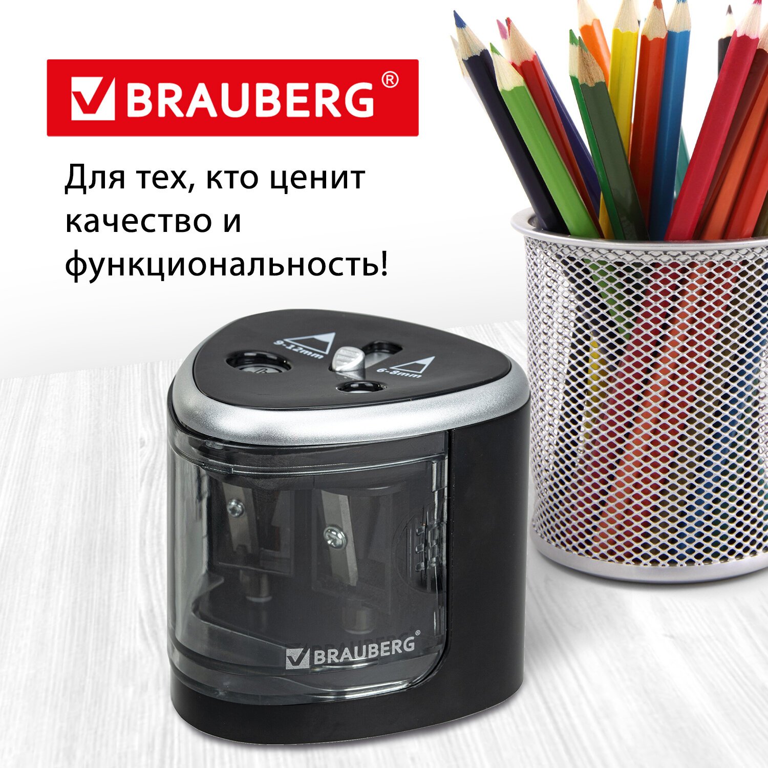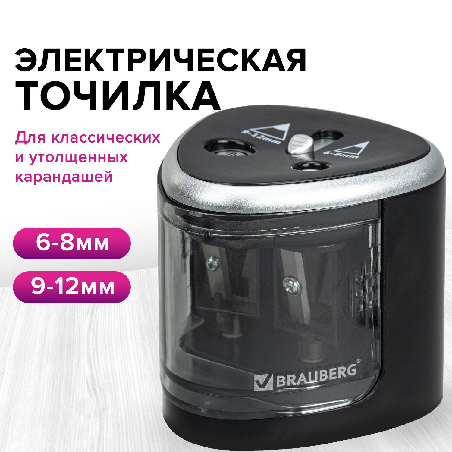 Точилка электрическая BRAUBERG "STANDARD", 2 отверстия для карандашей (включая утолщенные), питание от 4 батареек АА, 228423