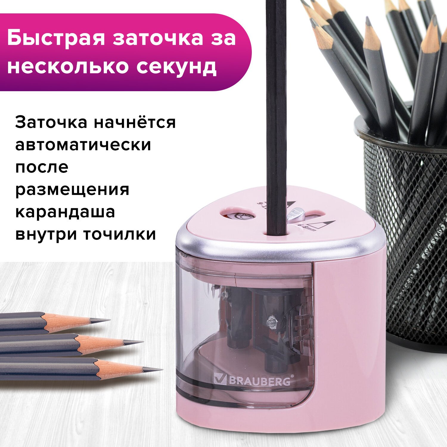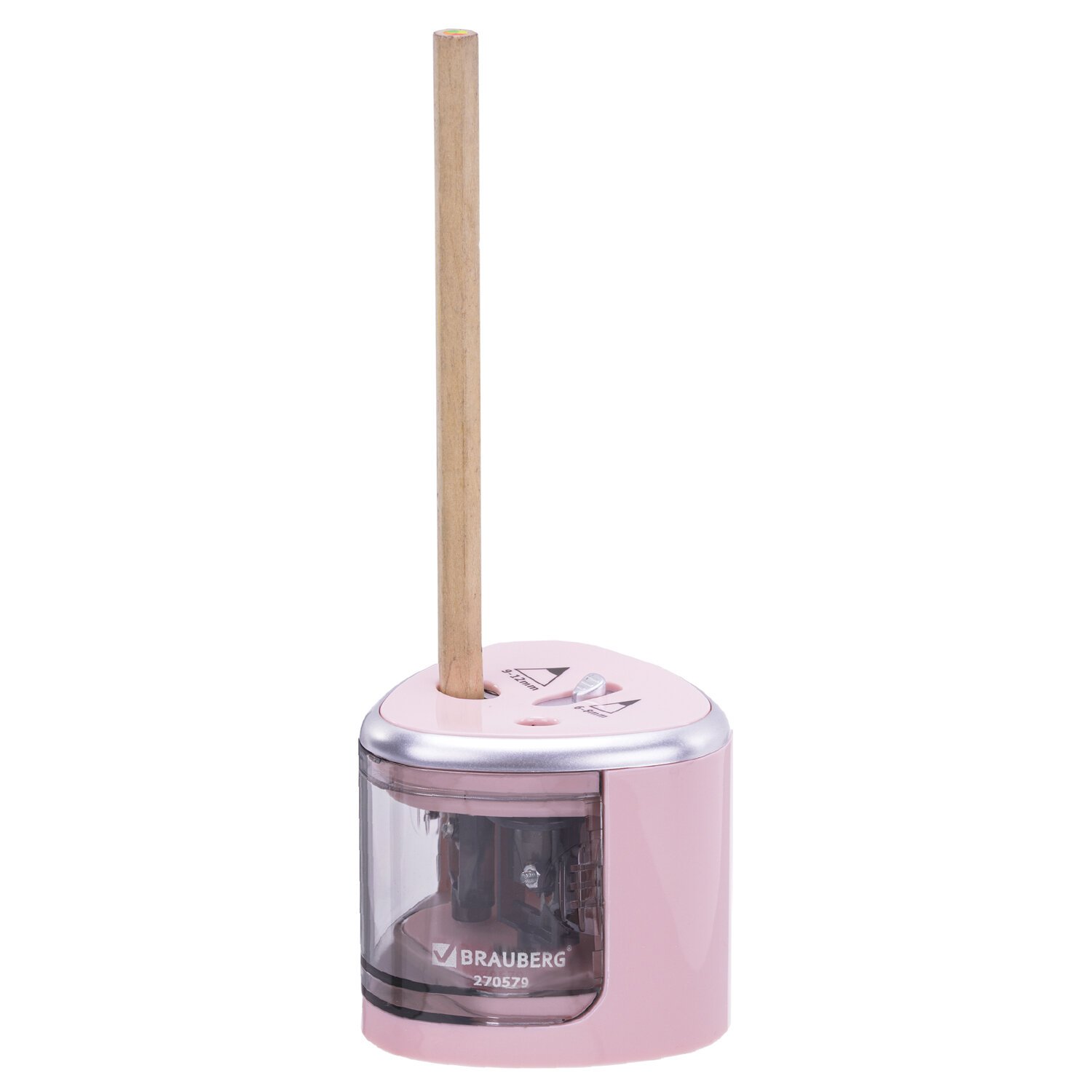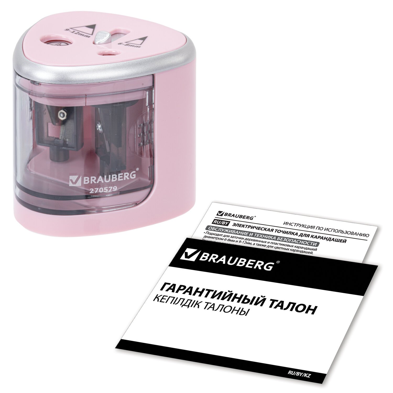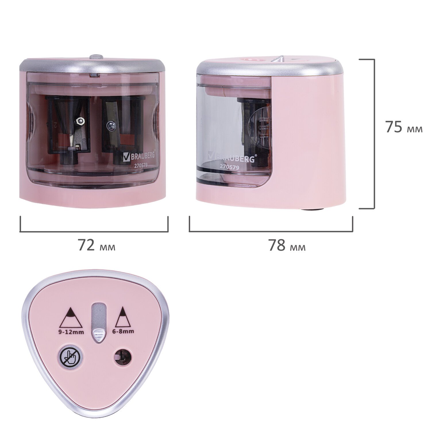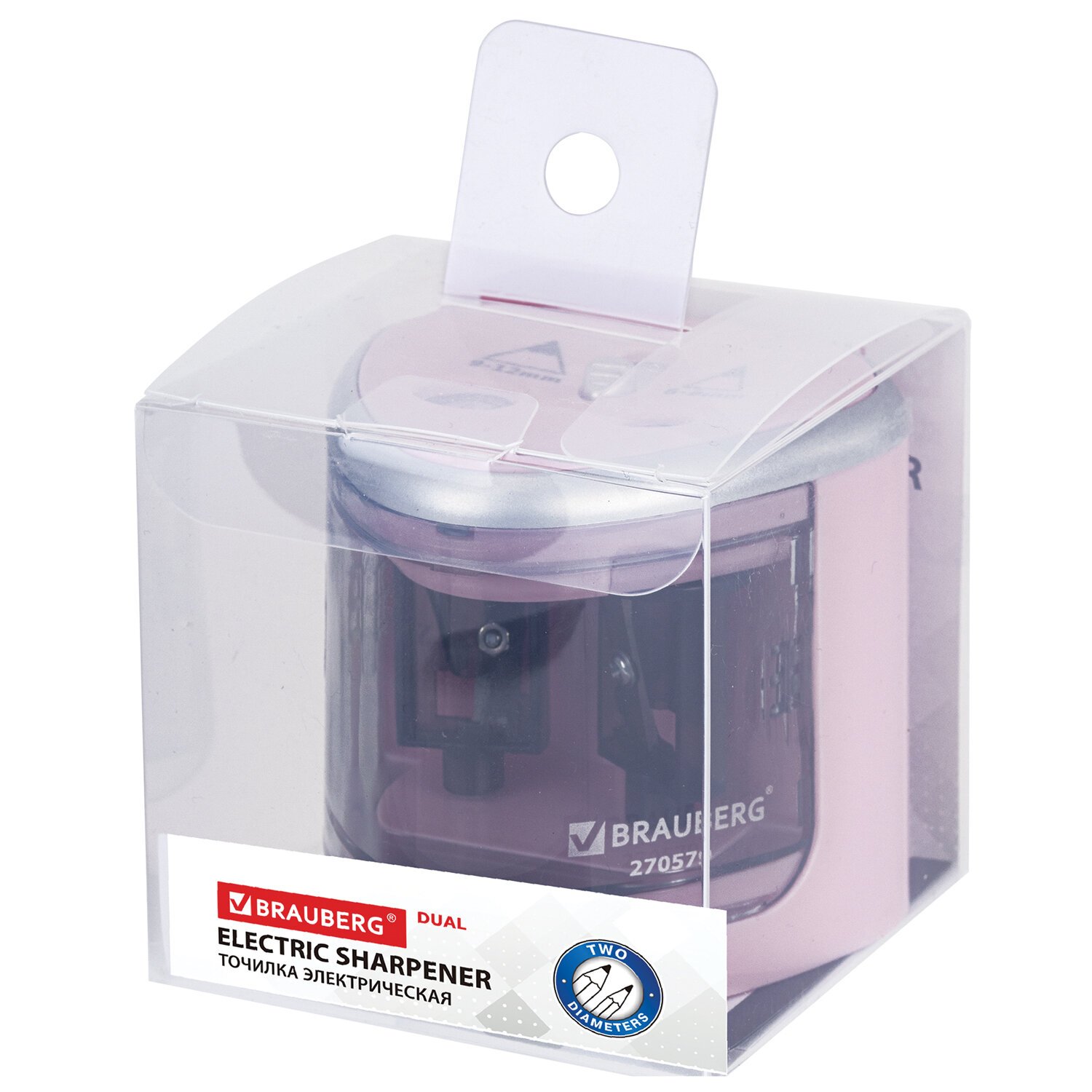Точилка электрическая BRAUBERG DUAL (для 2 диаметров карандашей!), 4 батарейки АА, розовая, 270579