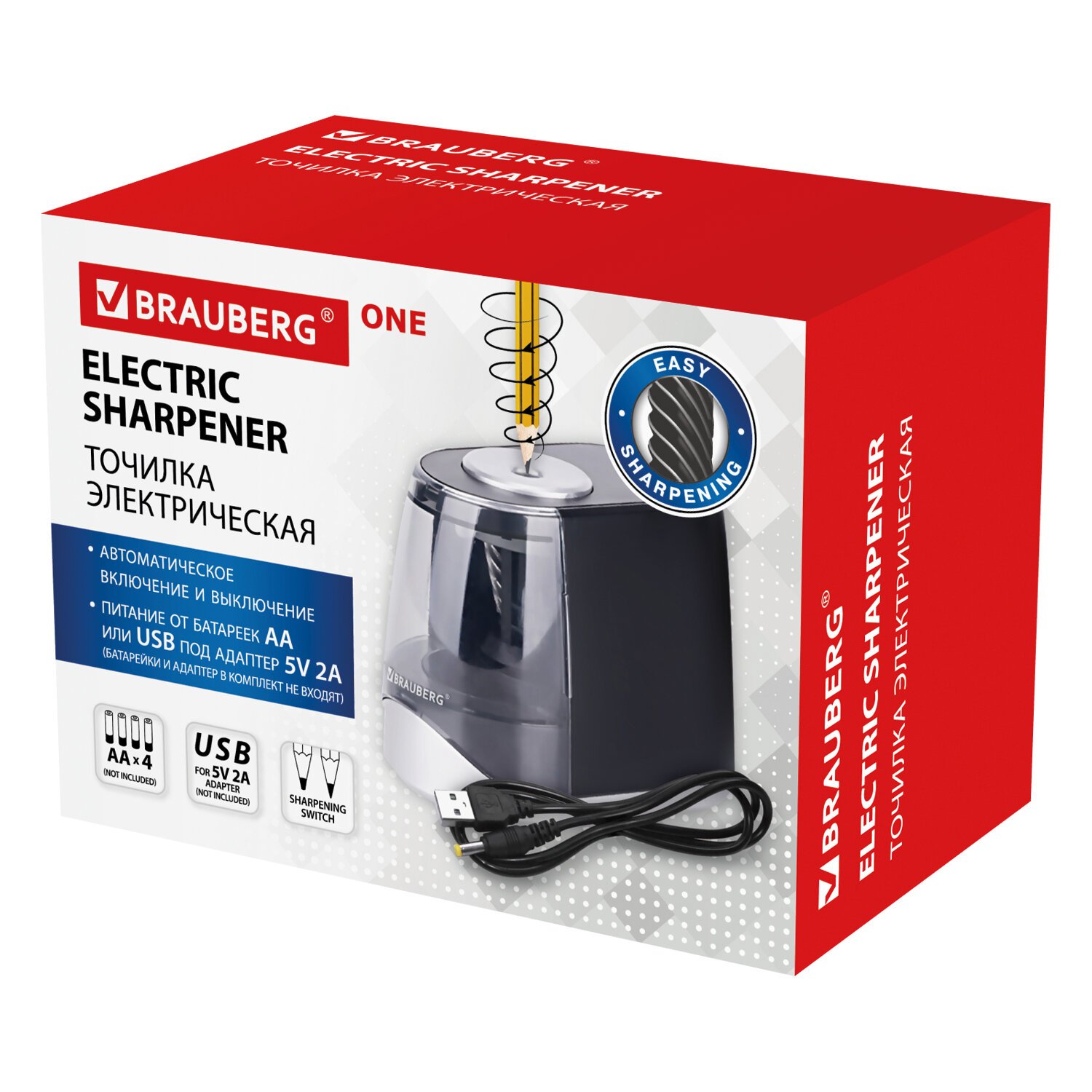 Точилка электрическая BRAUBERG ONE фреза с автостопом, 4 батарейки AA/USB (под адаптер), 270577