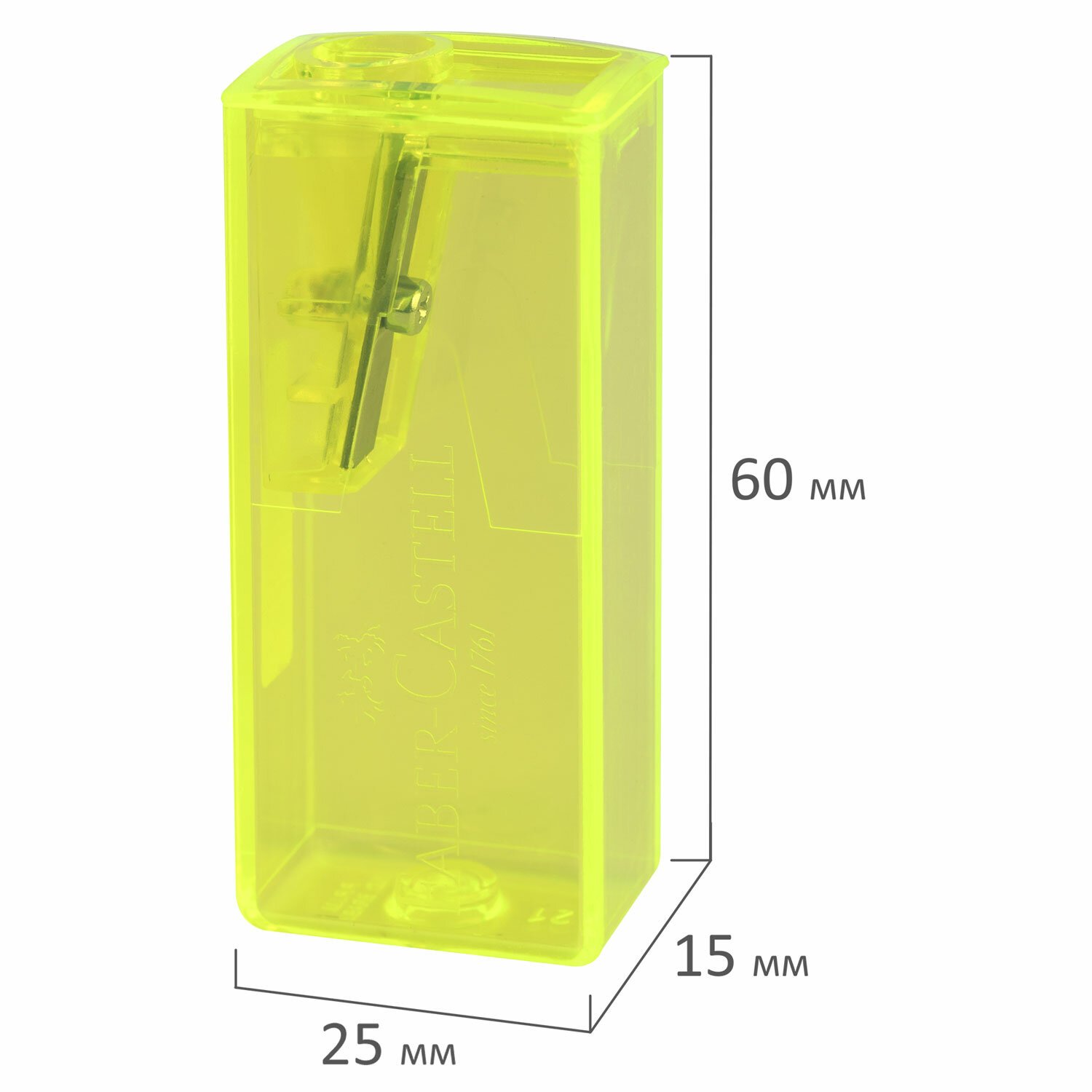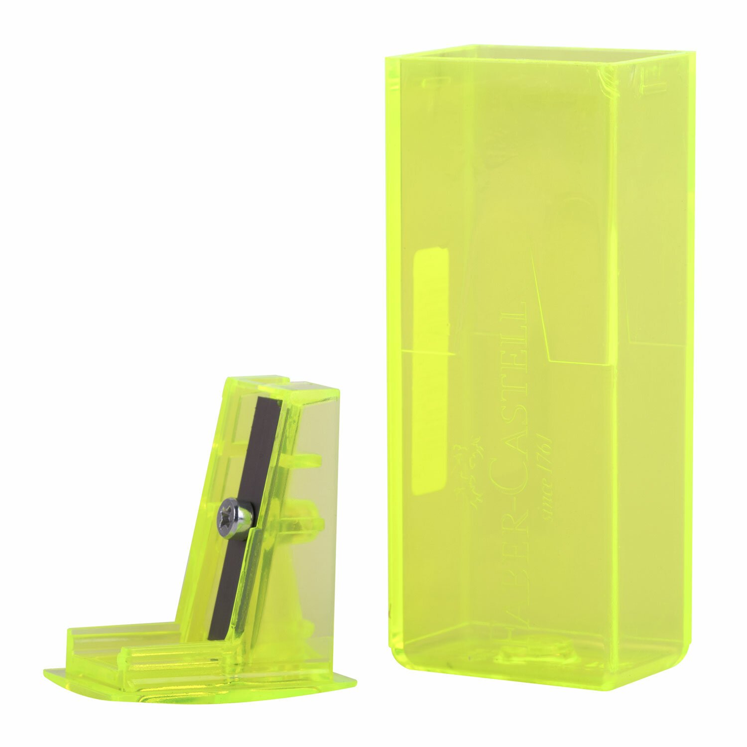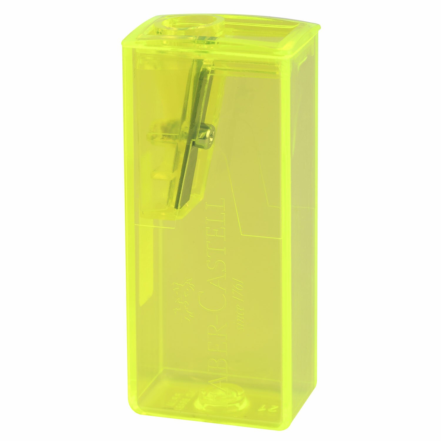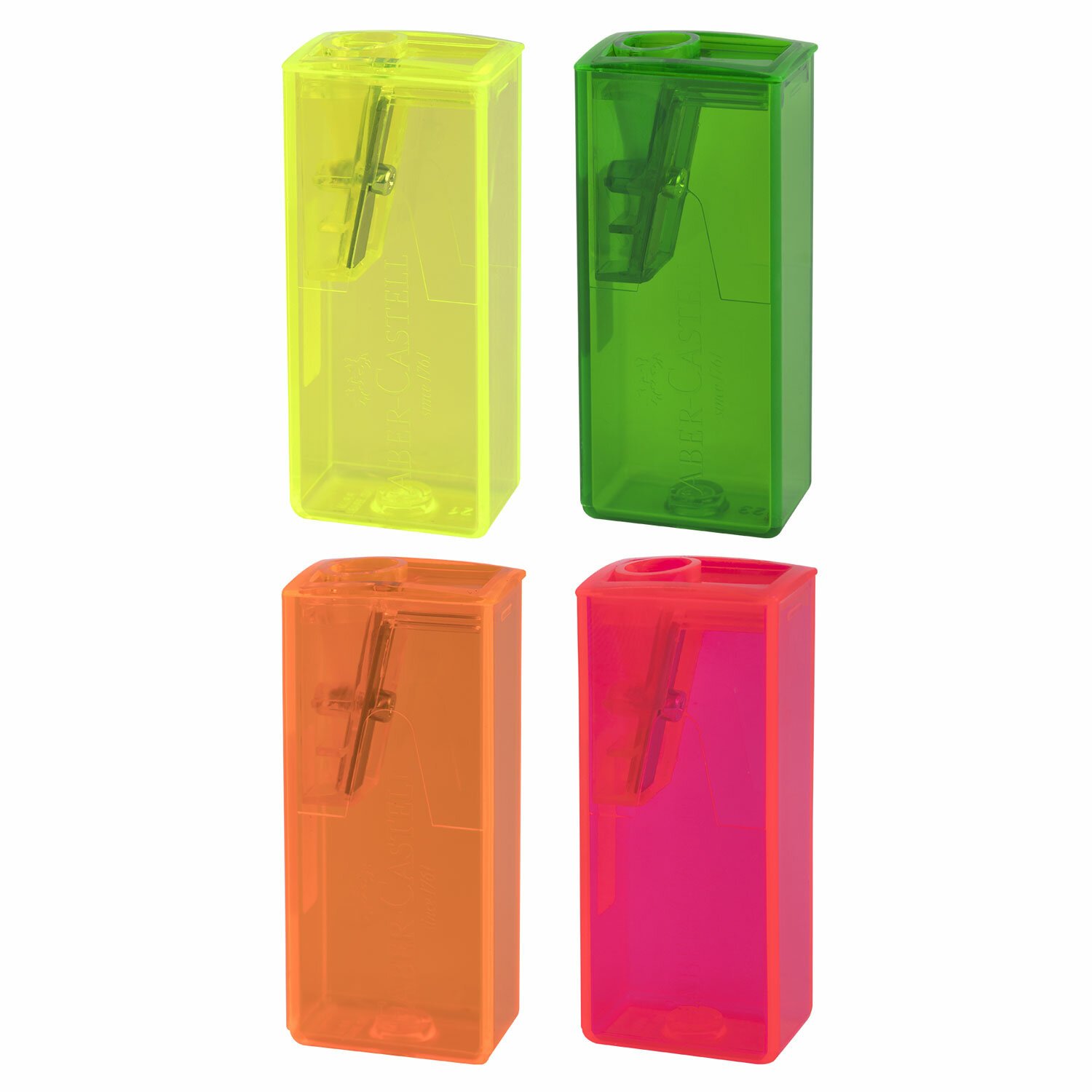 Точилка FABER-CASTELL, с контейнером, прямоугольная, пластиковая, детали флуоресцентные, ассорти, 581525
