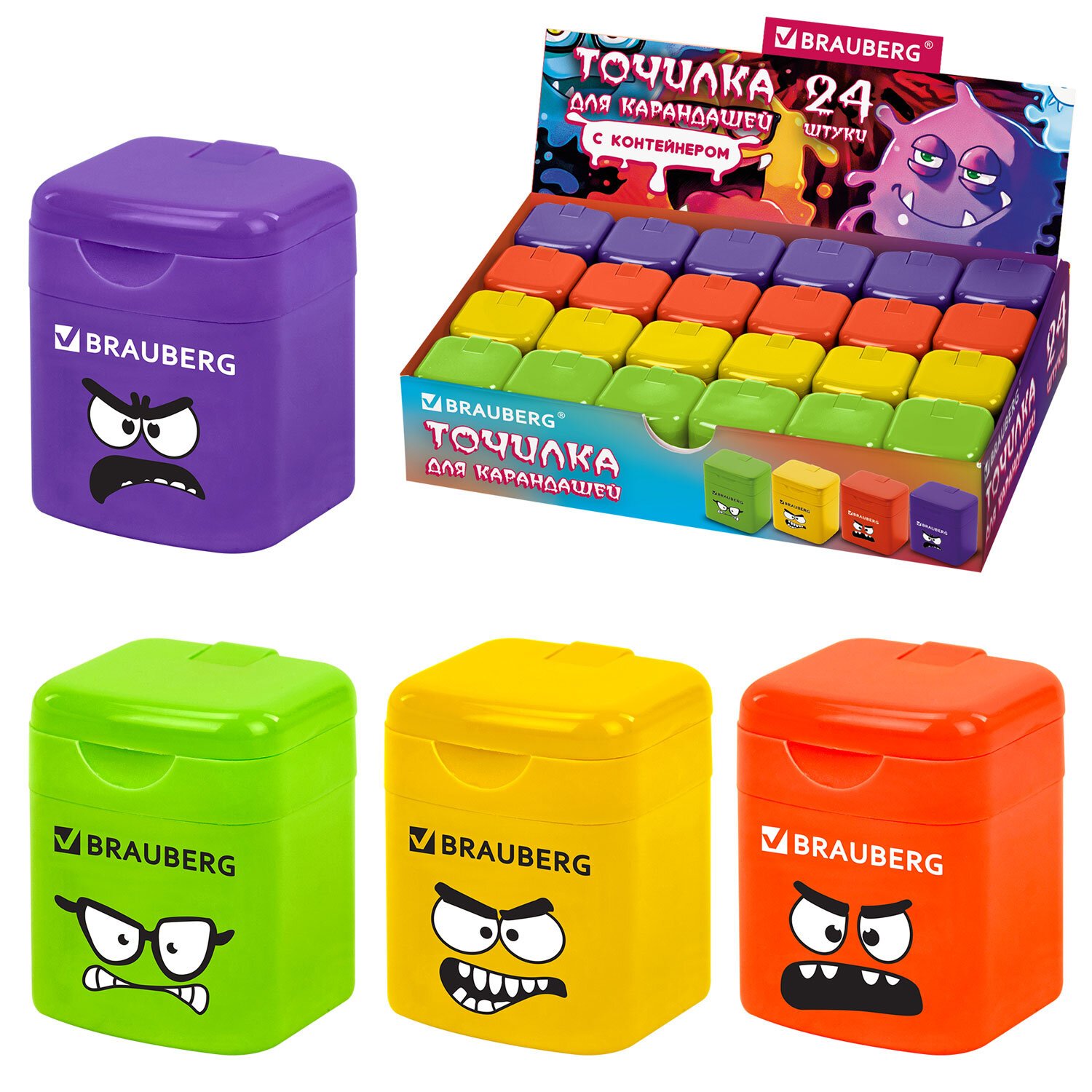 Точилка кросс-серия МОНСТРИКИ, с контейнером, корпус ассорти, BRAUBERG, 273235