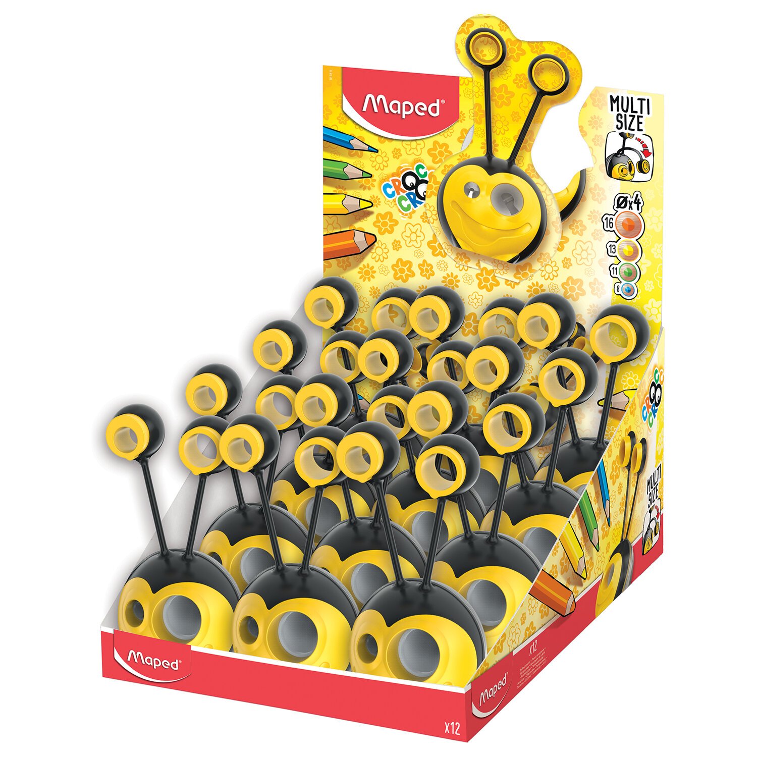 Многофункциональная точилка "Croc Croc Universal" в виде пчёлки подходит для карандашей и пластиковых мелков разного диаметра. Яркий дизайн привлекает внимание и поднимает настроение.