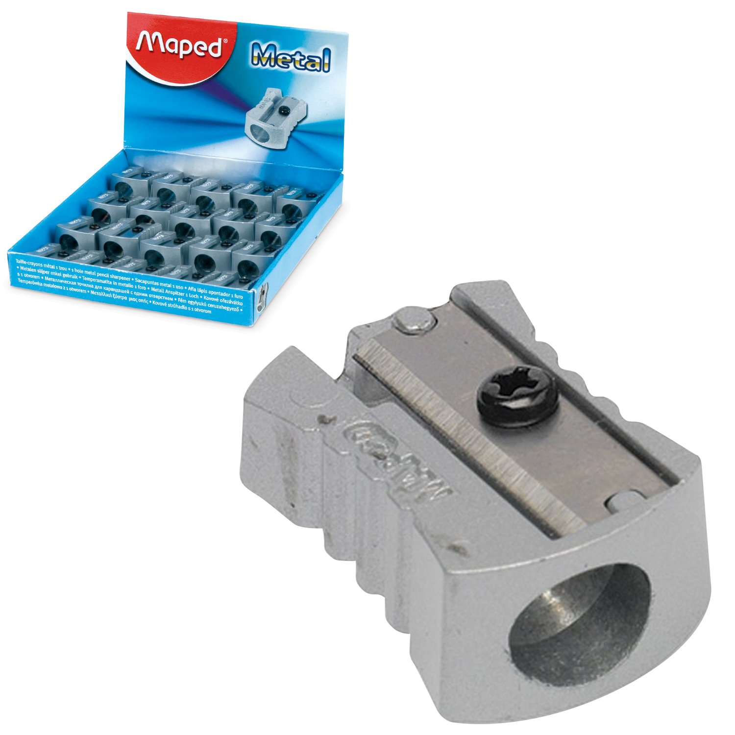 Точилка MAPED (Франция) "Metal", металлическая, классический дизайн, дисплей, 506600
