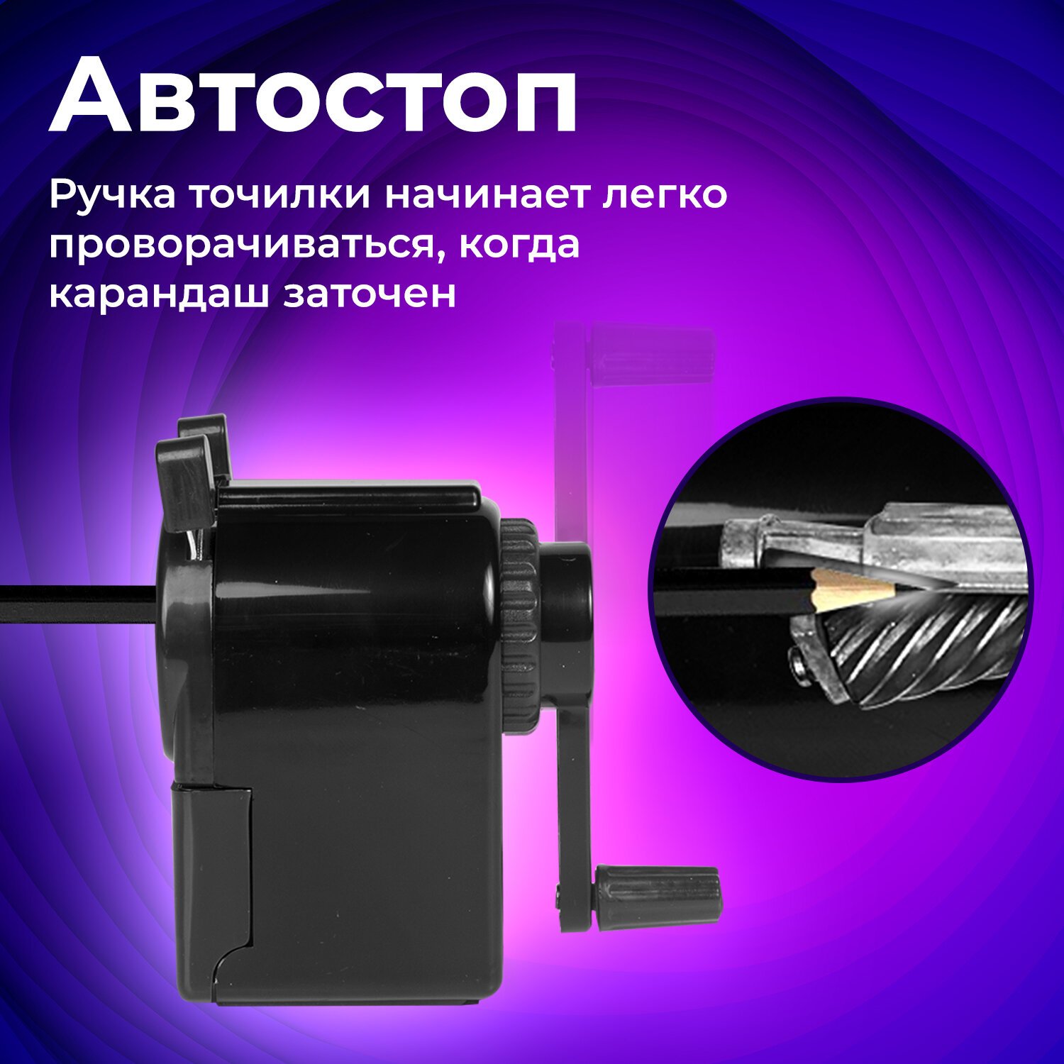 Точилка механическая BRAUBERG ULTRA для чернографитных и цветных карандашей, крепление к столу, цвет корпуса сиреневый с черным, 271341