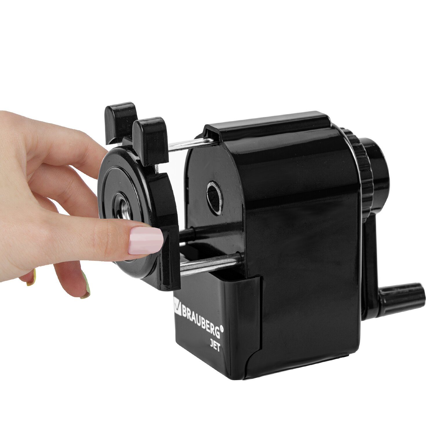 Точилка механическая BRAUBERG "JET", металлический механизм, корпус черный, 229566
