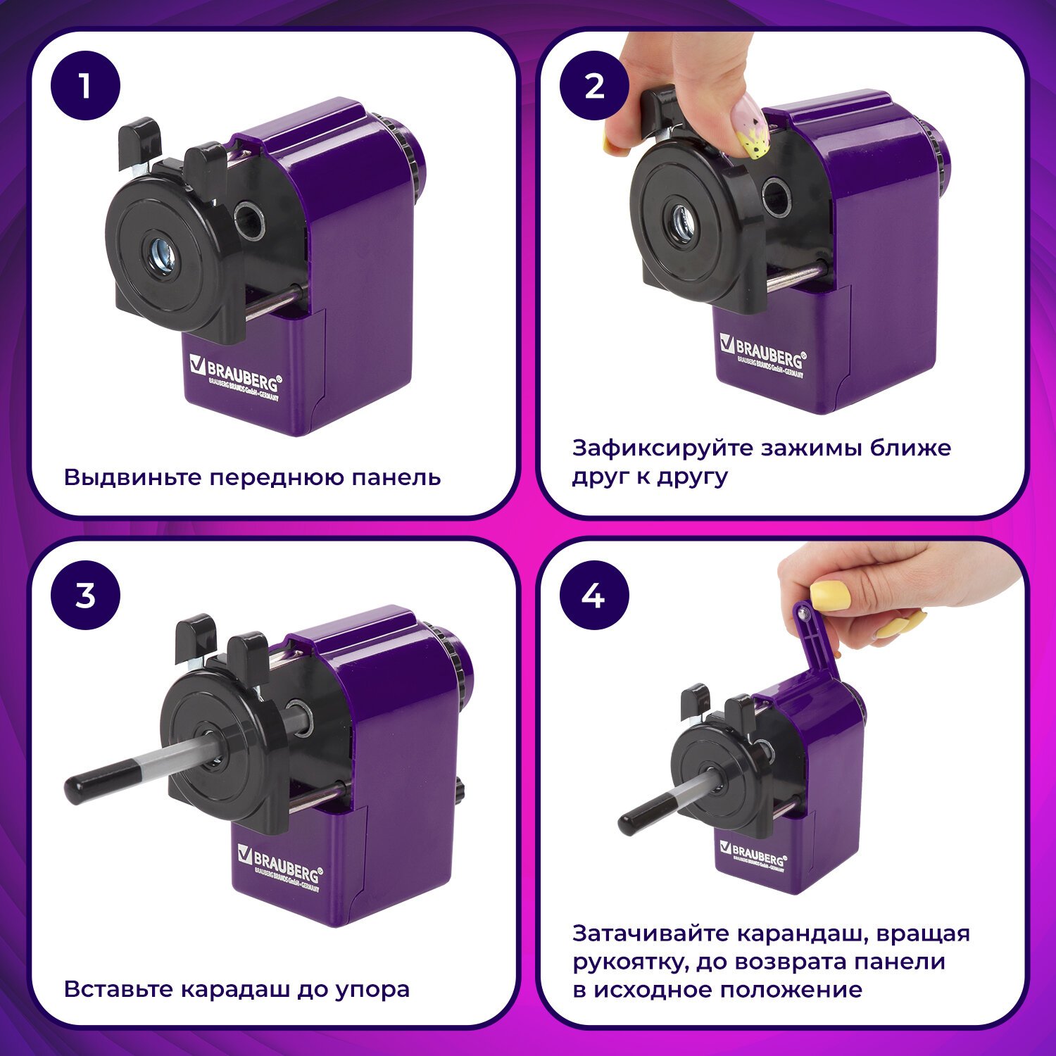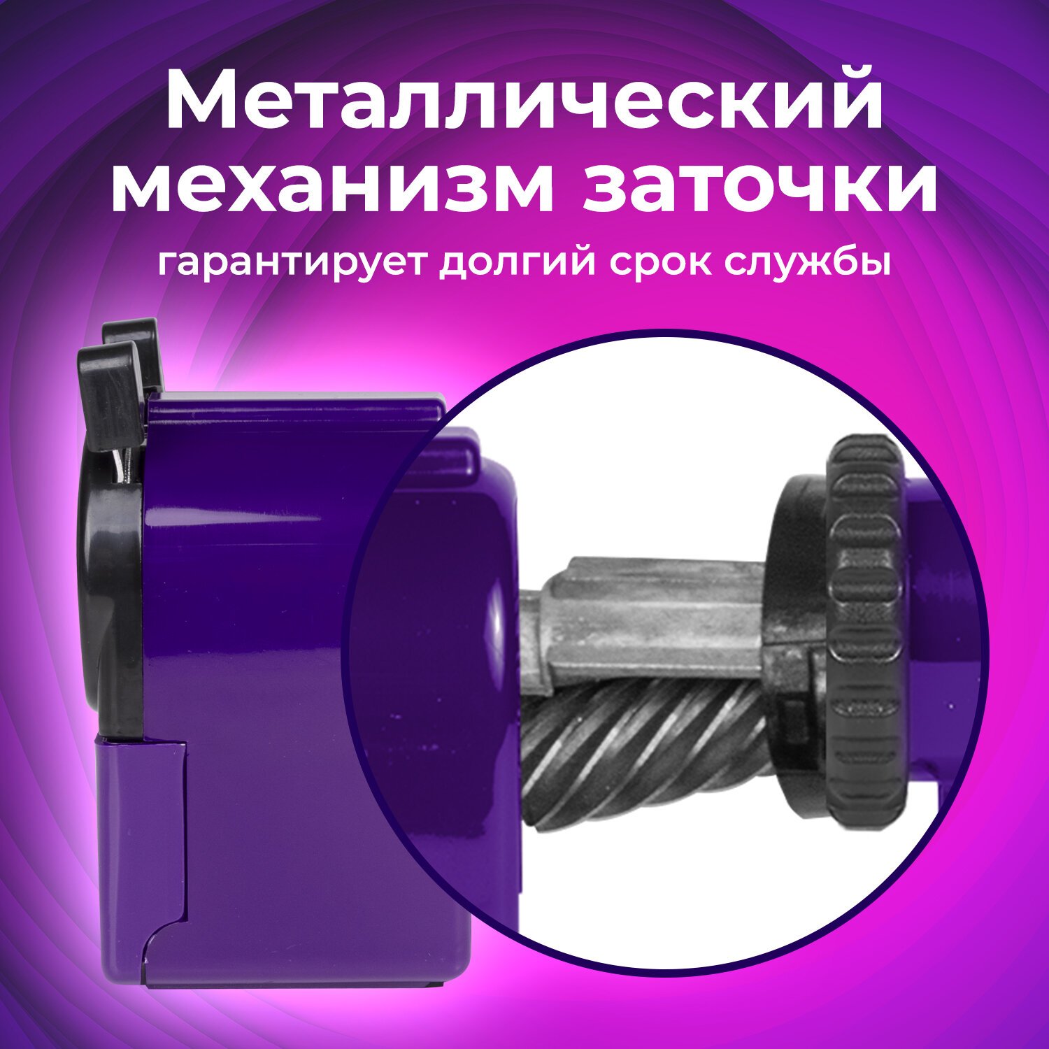 Точилка механическая BRAUBERG ULTRA для чернографитных и цветных карандашей, крепление к столу, цвет корпуса сиреневый с черным, 271341