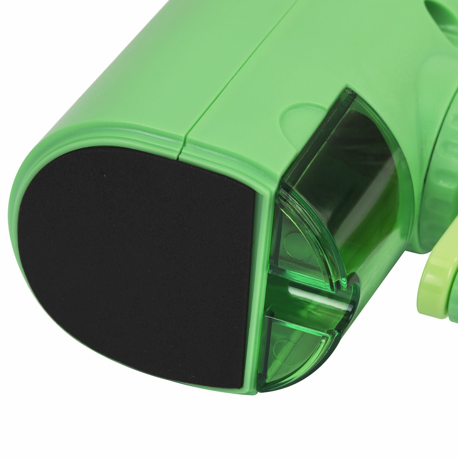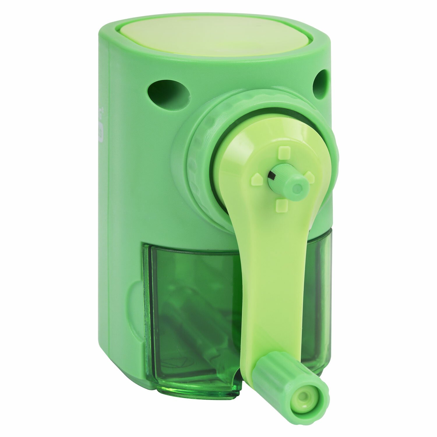 Корпус точилки выполнен из пластика мятного цвета. Вращающийся роликовый нож из высококачественной стали обеспечивает быструю и острую заточку. Струбцина позволит надежно зафиксировать точилку на поверхности рабочего стола. Точилка имеет одно отверстие и контейнер для сбора стружки. Диаметр затачиваемого карандаша - 8 мм. Размер - 102х97х50 мм.
