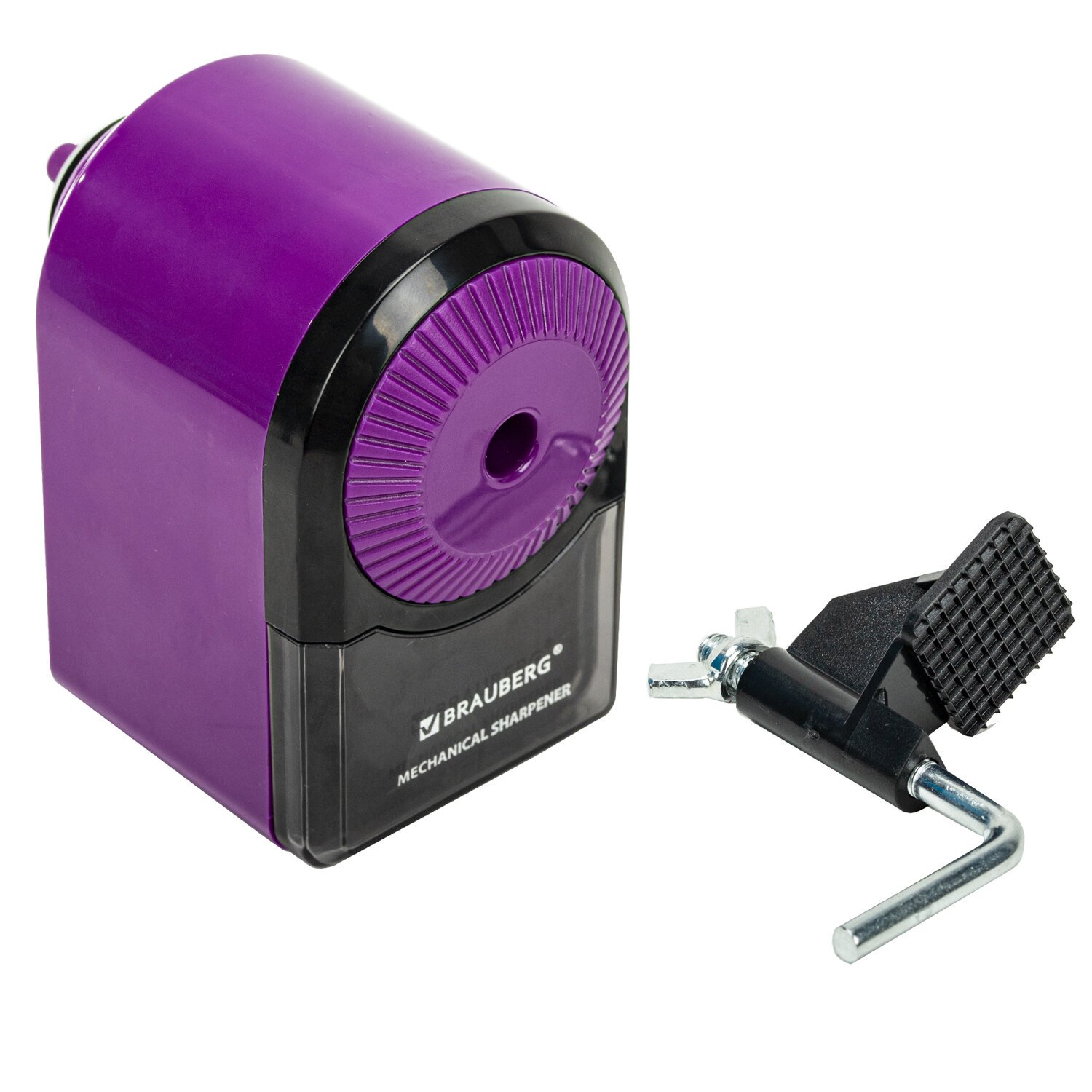 Точилка механическая BRAUBERG ULTRA для чернографитных и цветных карандашей, крепление к столу, цвет корпуса сиреневый с черным, 271341