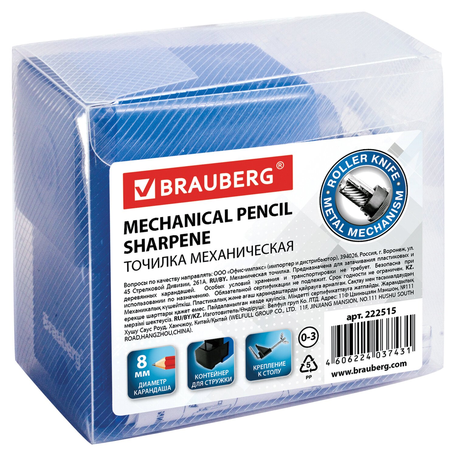 Точилка механическая BRAUBERG "ORIGINAL", для чернографитных и цветных карандашей, крепление к столу, корпус синий, 228480