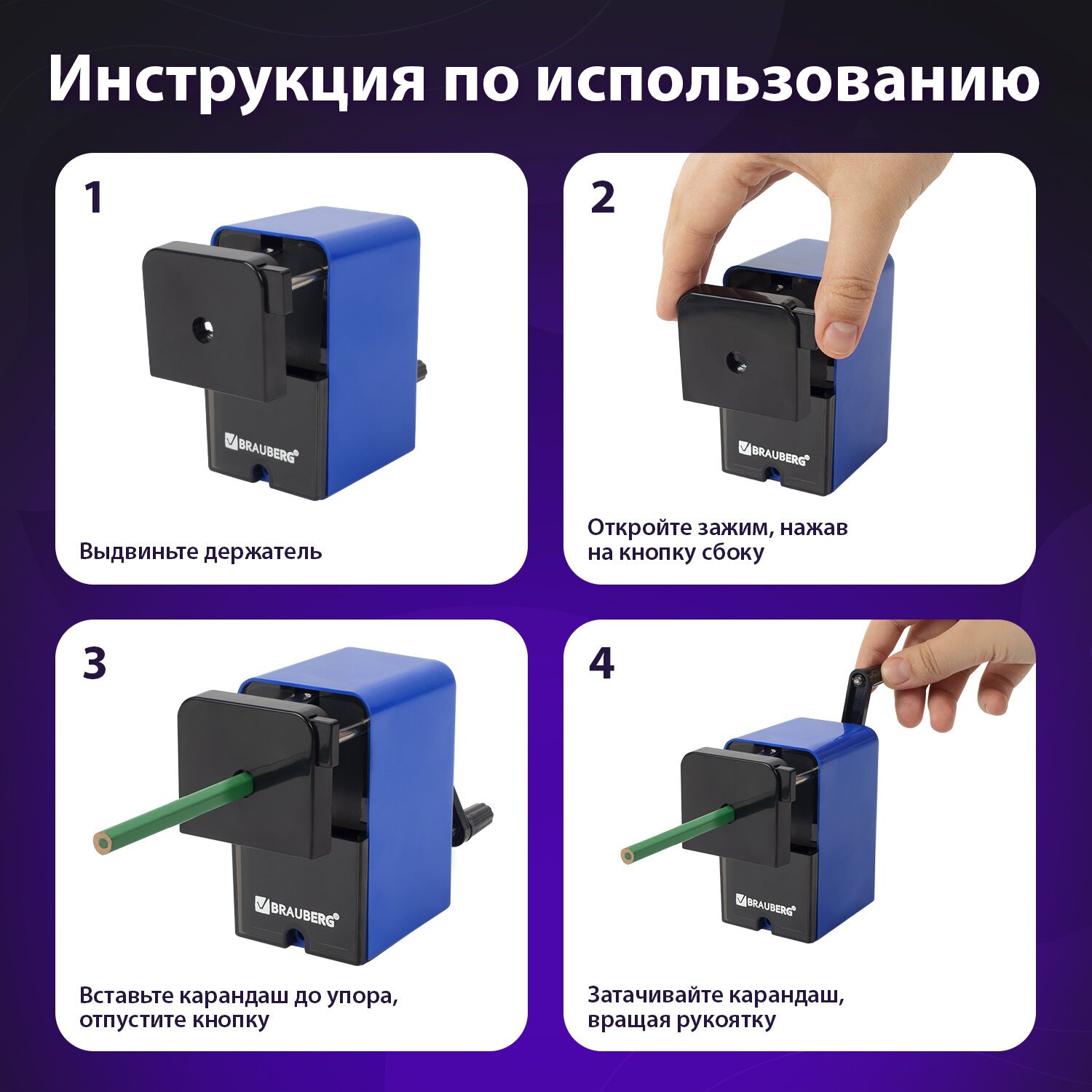 Точилка механическая BRAUBERG ULTRA для чернографитных и цветных карандашей, крепление к столу, цвет корпуса сиреневый с черным, 271341