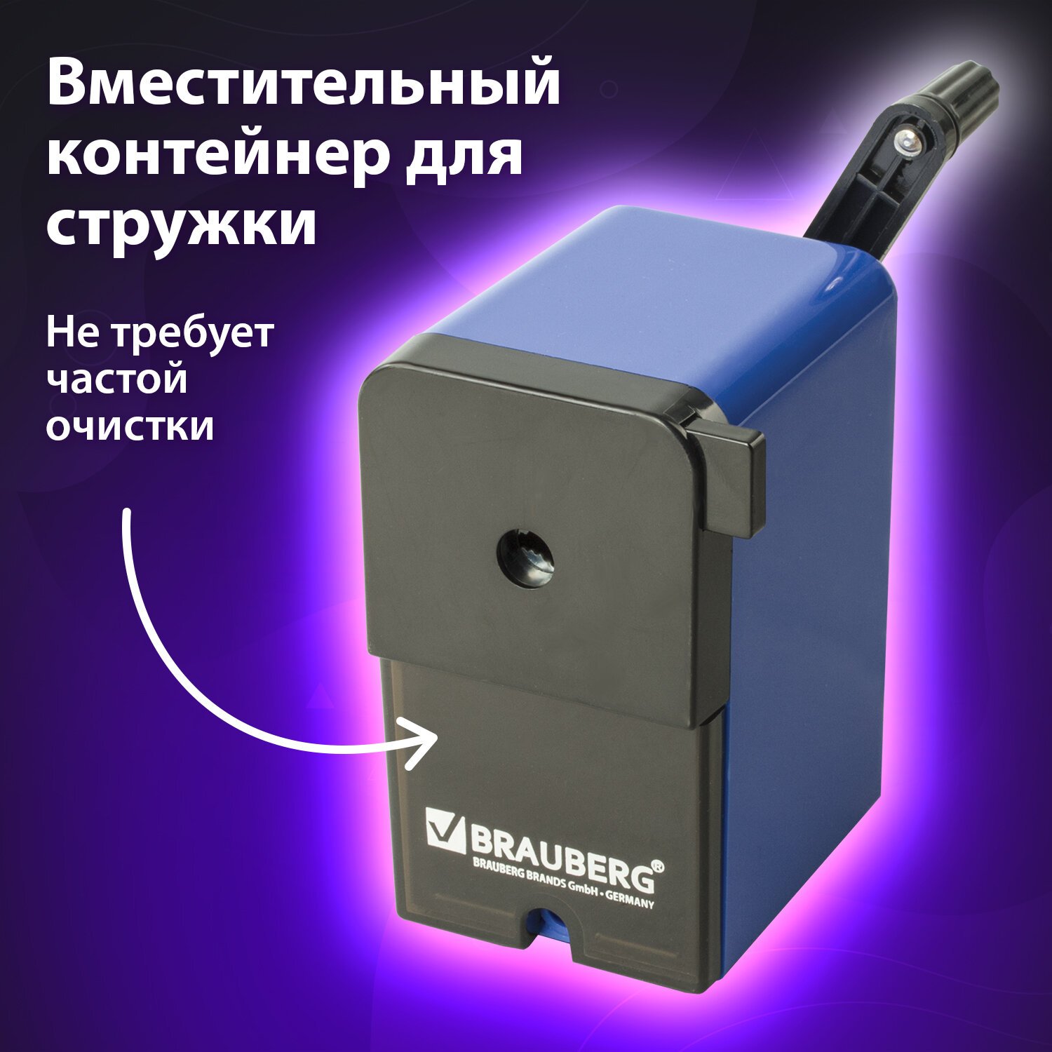 Точилка механическая BRAUBERG ULTRA для чернографитных и цветных карандашей, крепление к столу, цвет корпуса голубой с черным, 271342