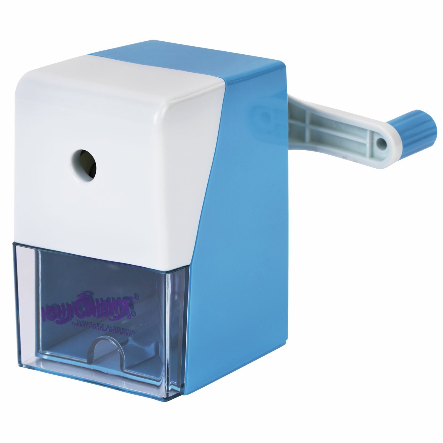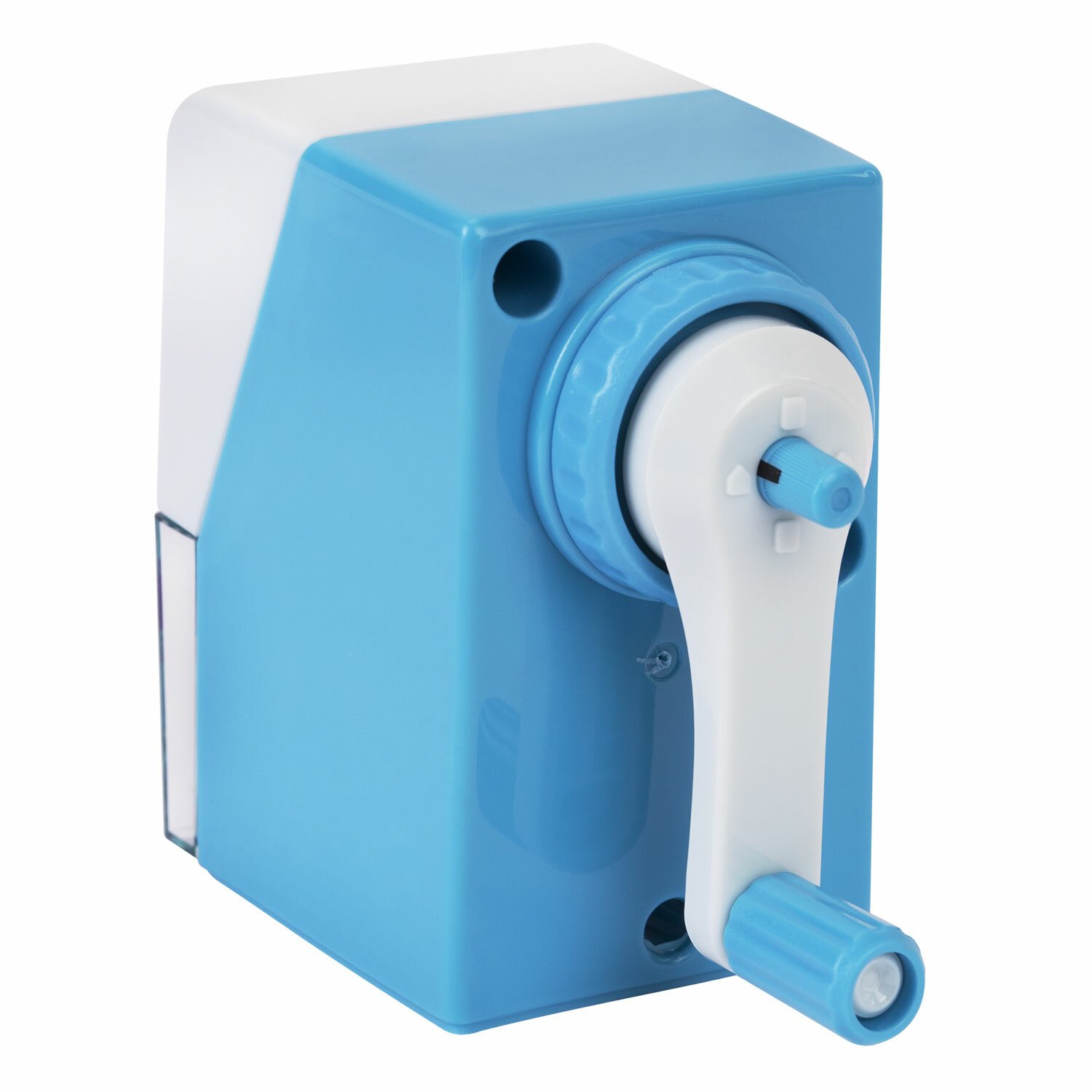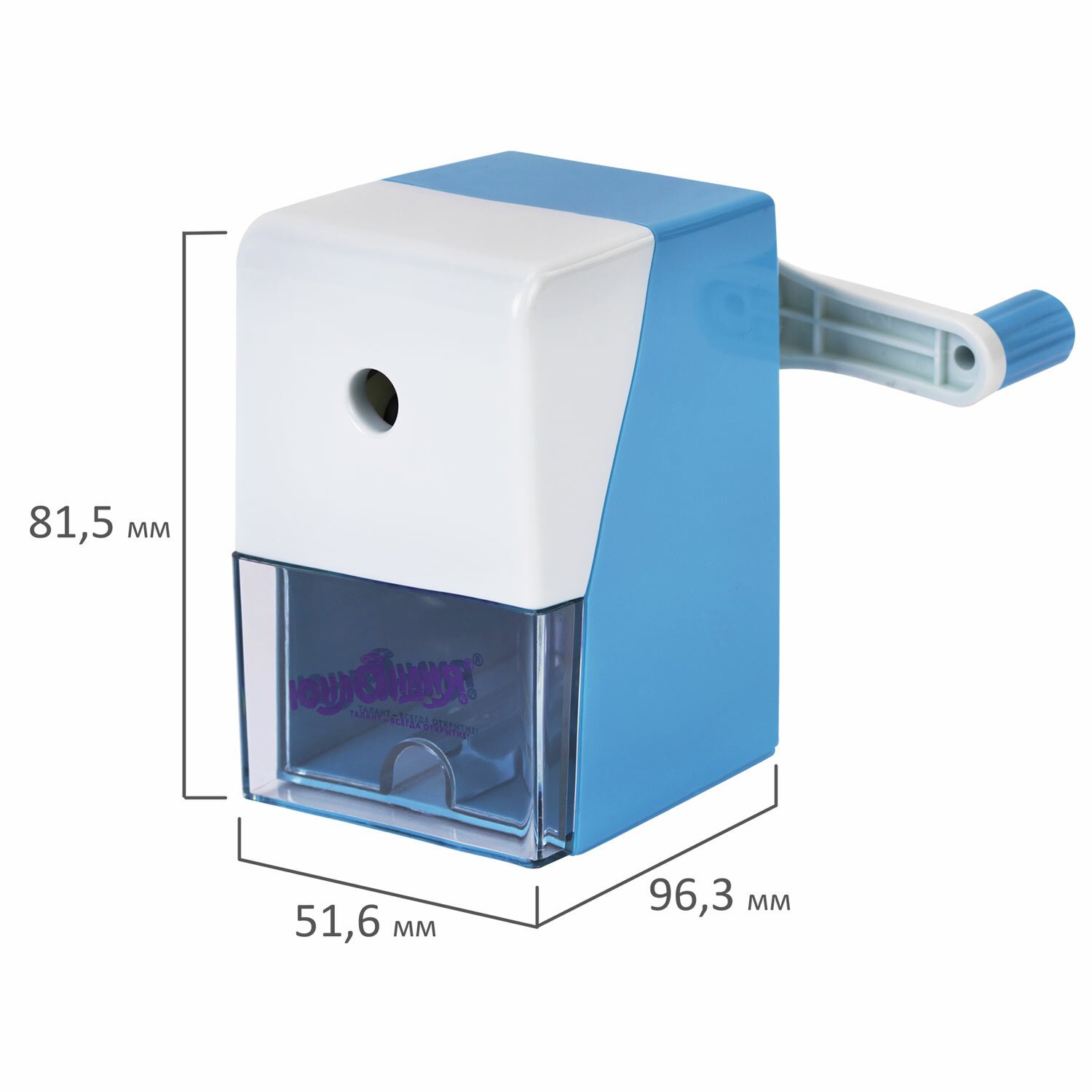 Корпус точилки выполнен из пластика в двух оттенках голубого цвета. Вращающийся роликовый нож из высококачественной стали обеспечивает быструю и острую заточку. Струбцина позволит надежно зафиксировать точилку на поверхности рабочего стола. Точилка имеет одно отверстие и вместительный контейнер для сбора стружки. Диаметр затачиваемого карандаша - 8 мм. Размер - 96х81х51 мм.
