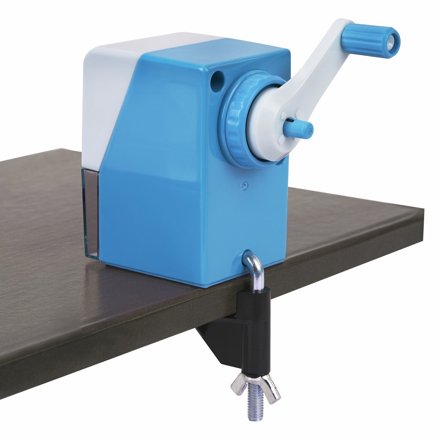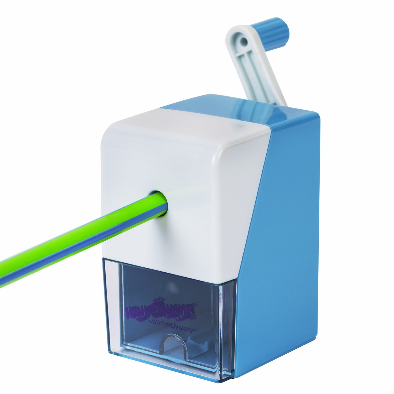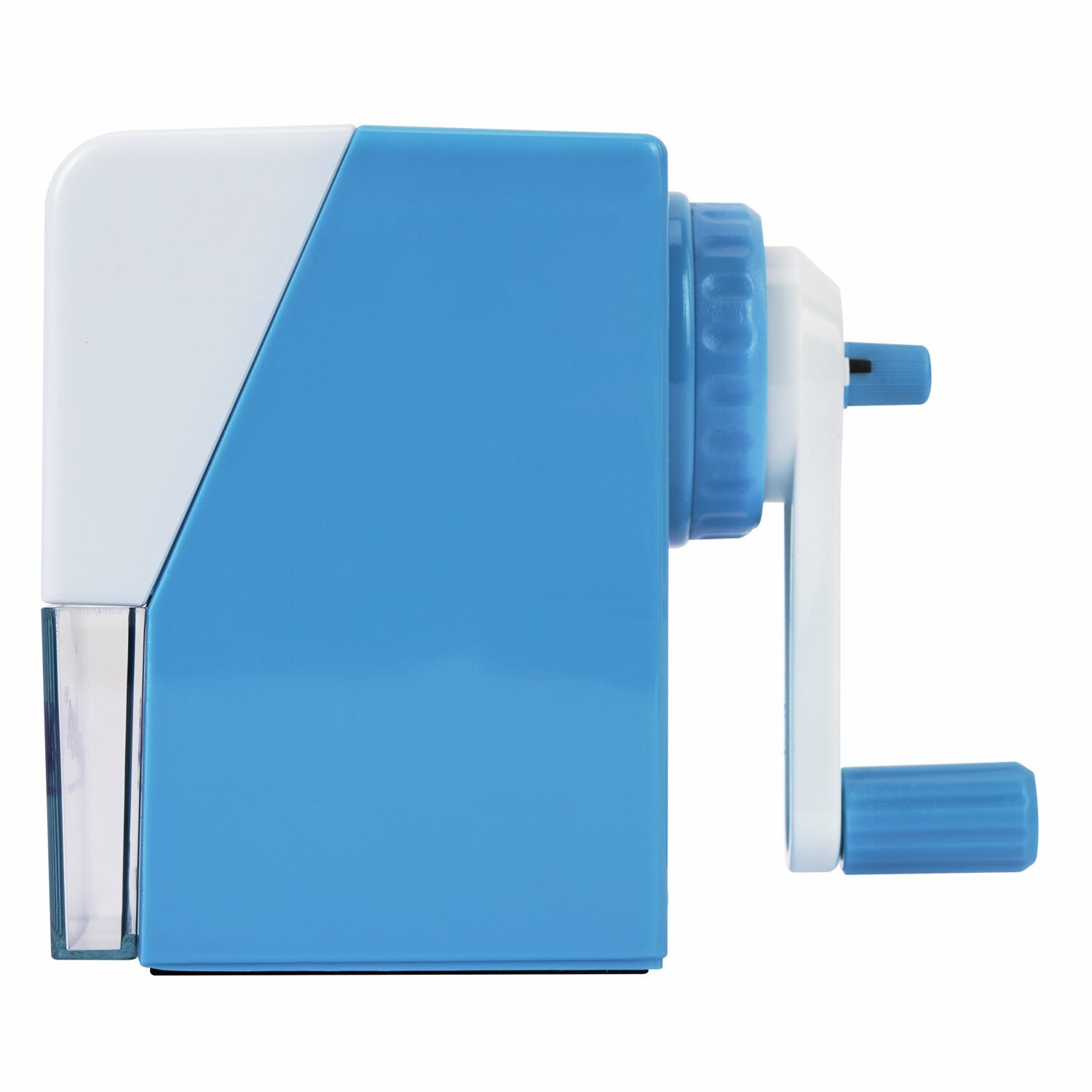 Корпус точилки выполнен из пластика в двух оттенках голубого цвета. Вращающийся роликовый нож из высококачественной стали обеспечивает быструю и острую заточку. Струбцина позволит надежно зафиксировать точилку на поверхности рабочего стола. Точилка имеет одно отверстие и вместительный контейнер для сбора стружки. Диаметр затачиваемого карандаша - 8 мм. Размер - 96х81х51 мм.
