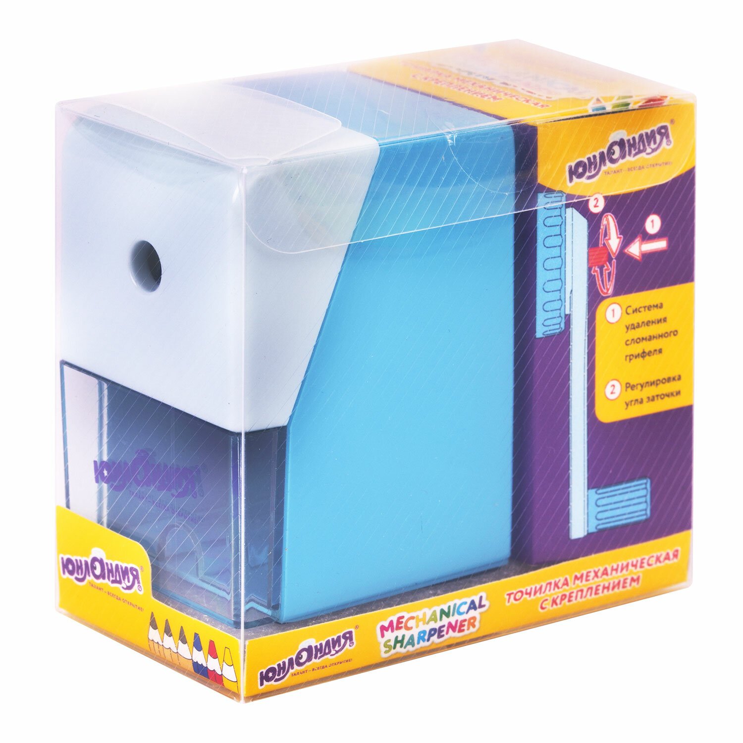 Точилка механическая ЮНЛАНДИЯ "Машина Юнландика", корпус голубой, для чернографитных и цветных карандашей, 228479