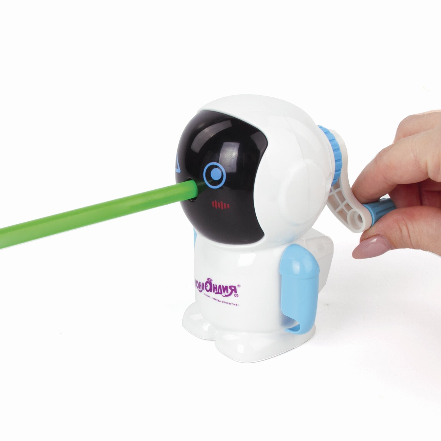 Оригинальный пластиковый корпус в виде астронавта. Во время заточки карандаша ручки астронавта двигаются. В ручки можно вставить карандаш. Вращающийся роликовый нож из высококачественной стали обеспечивает быструю и острую заточку. Точилка имеет одно отверстие и вместительный контейнер для сбора стружки. Диаметр затачиваемого карандаша - 8 мм. Размер: 90х110х80 мм.