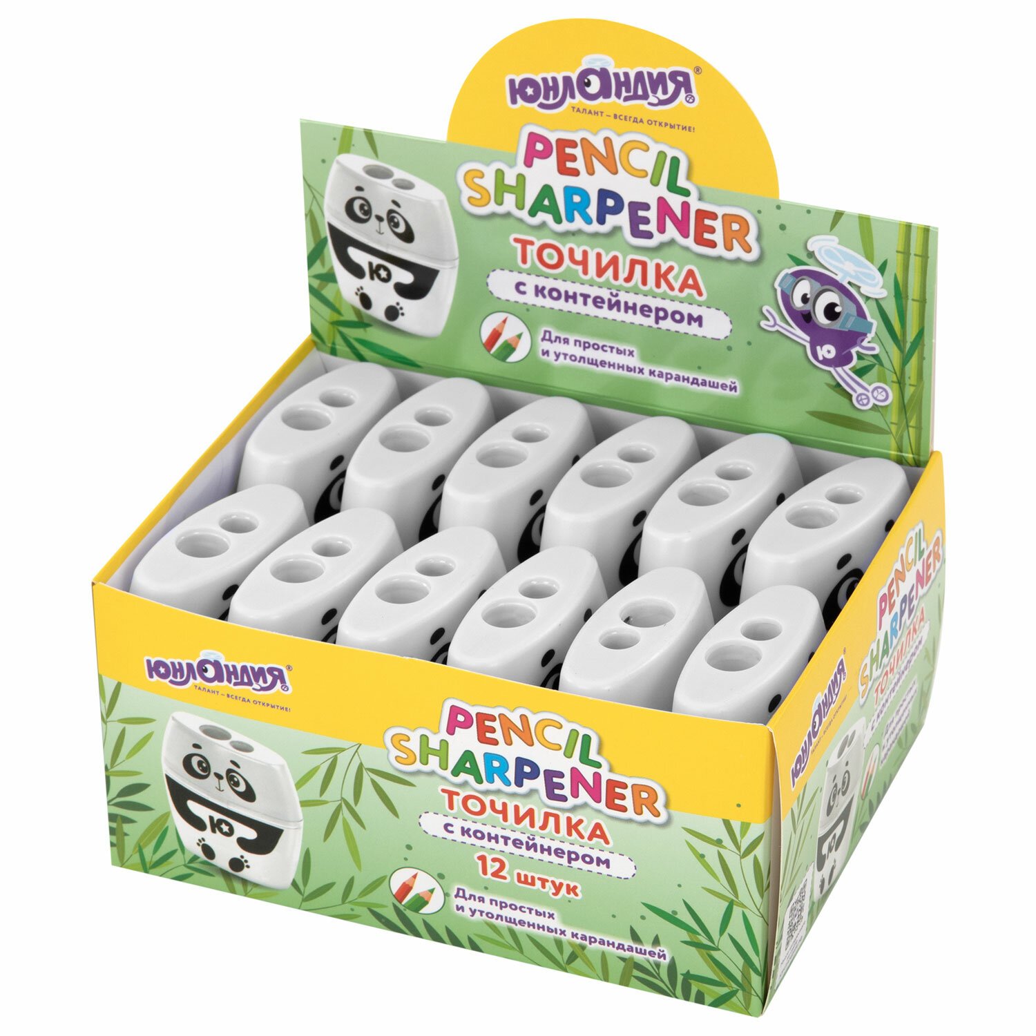 Точилка для карандашей ЮНЛАНДИЯ "ПАНДА" с двумя отверстиями предназначена для заточки стандартных и утолщенных карандашей. Подходит для карандашей, изготовленных из пластика и древесины. Благодаря эргономичной форме и малому весу точилку удобно держать в руке. Острое стальное лезвие продуманной конструкции упрощает процесс затачивания, сводя риск поломки грифеля к нулю.