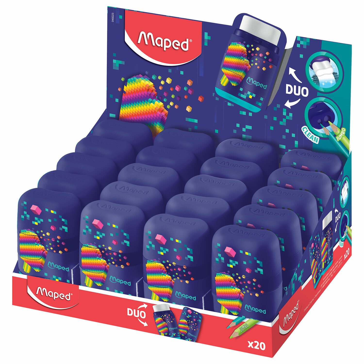 Точилка с ластиком 2 в 1 MAPED (Франция) "Pixel Party Connect", 2 отверстия, 049223