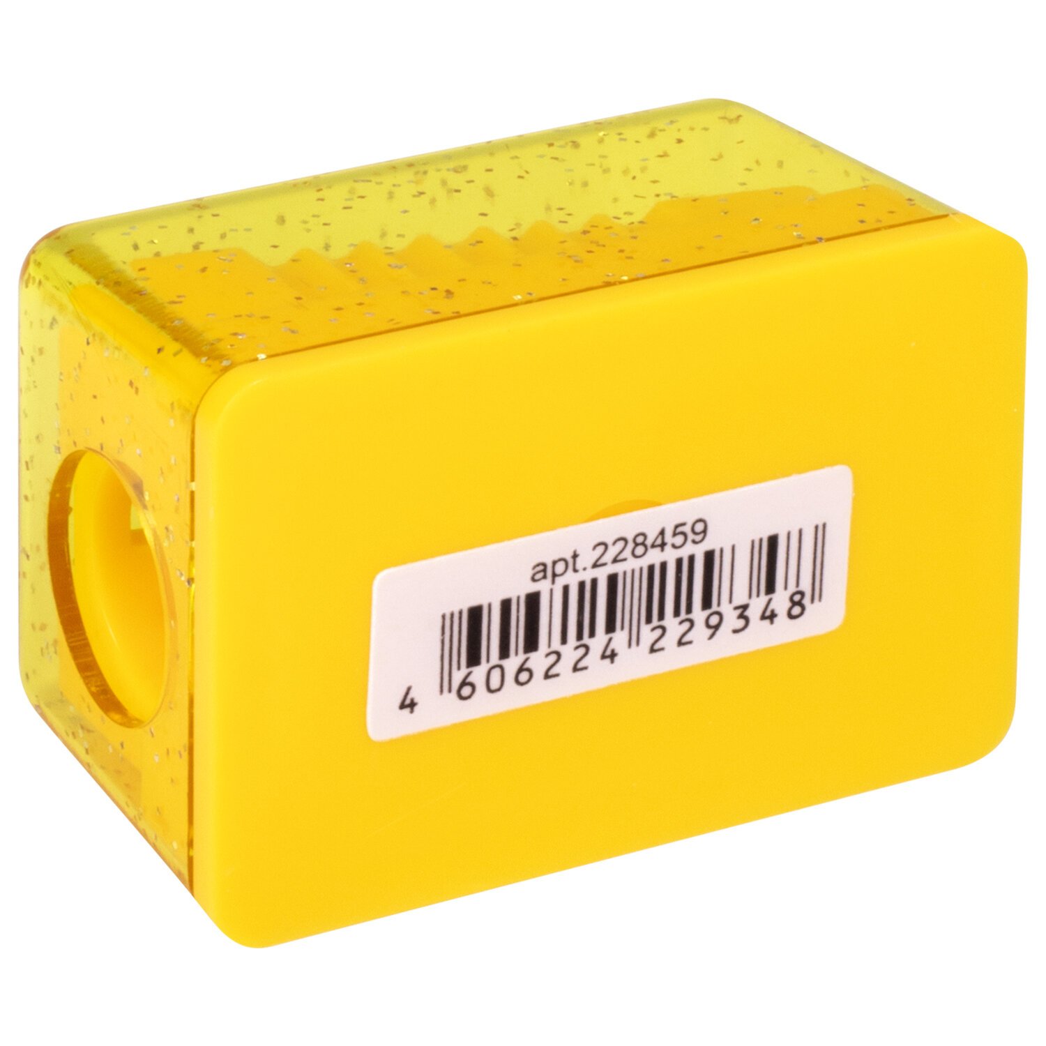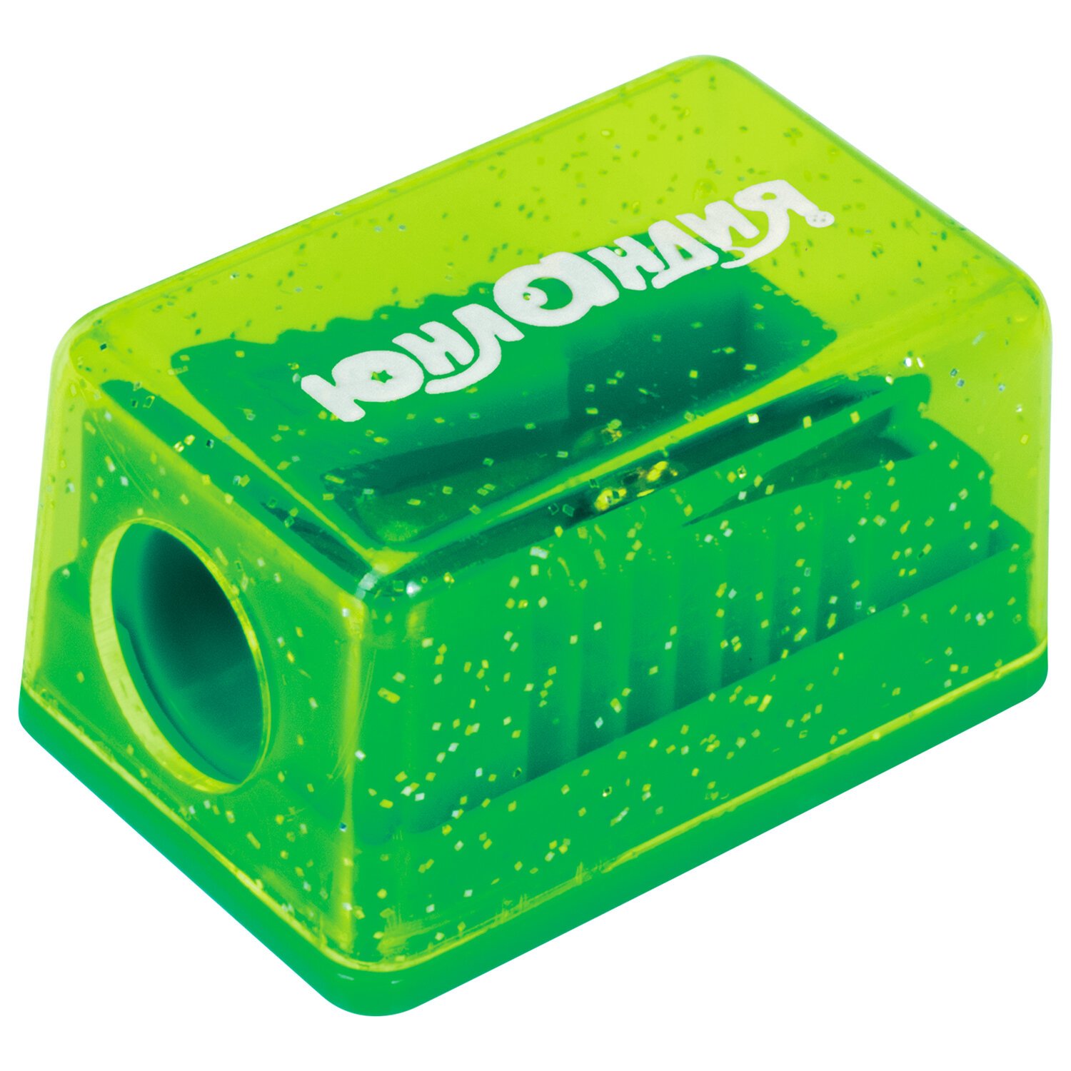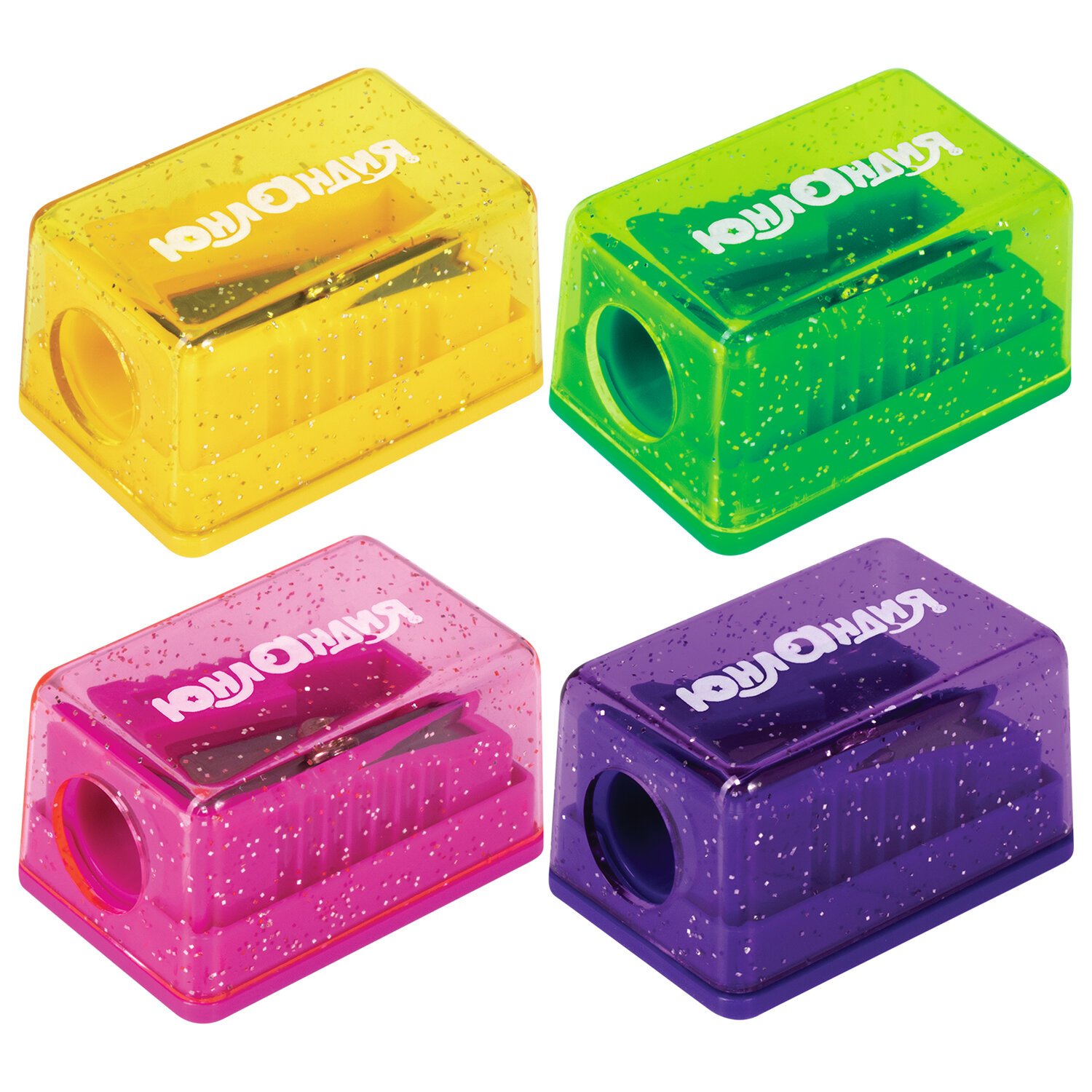 Эргономичный корпус выполнен из пластика ярких цветов ассорти. Прямоугольная форма точилки позволяет удобно держать ее в руке. Острое стальное лезвие обеспечивает быструю и легкую заточку. Карандаш затачивается аккуратно, а опилки остаются в специальном контейнере. Размер - 30х20х16 мм.
