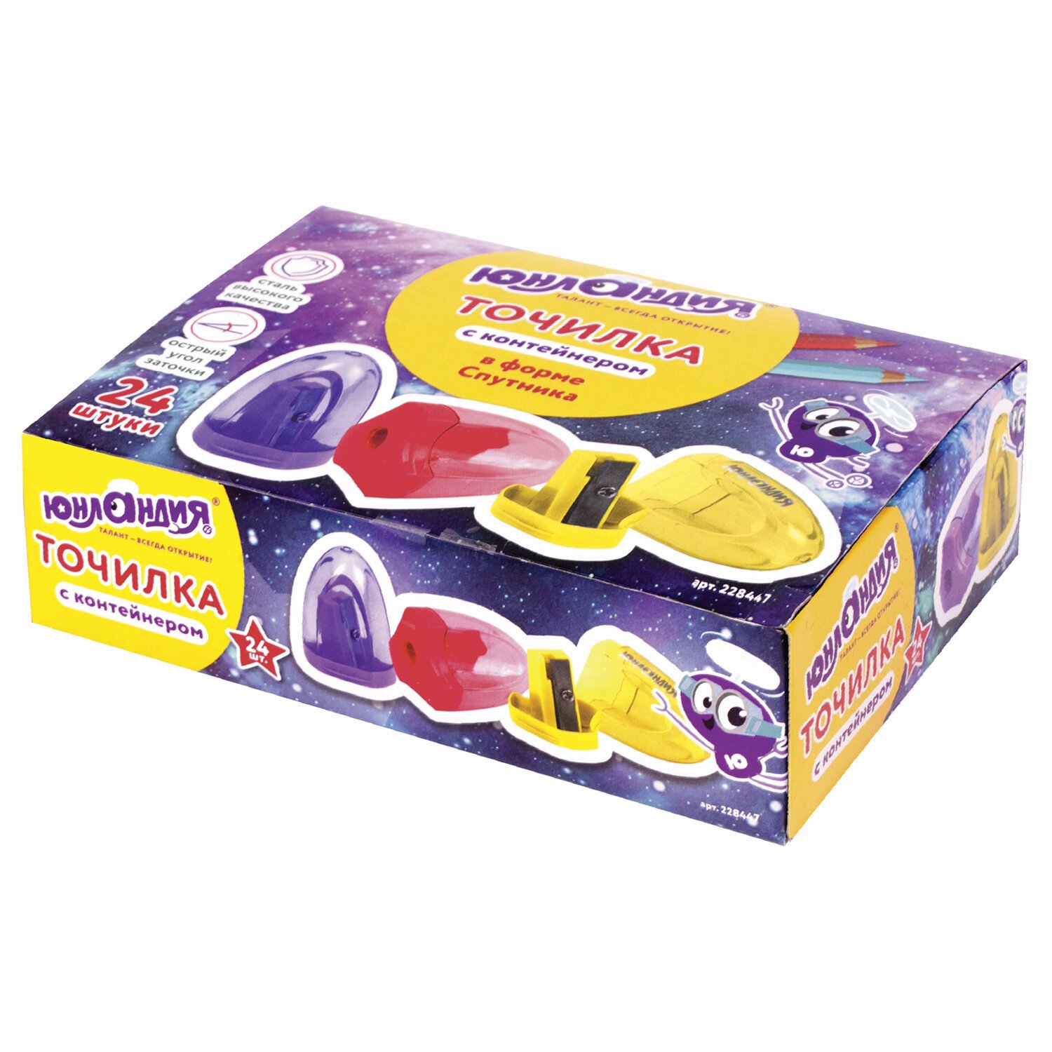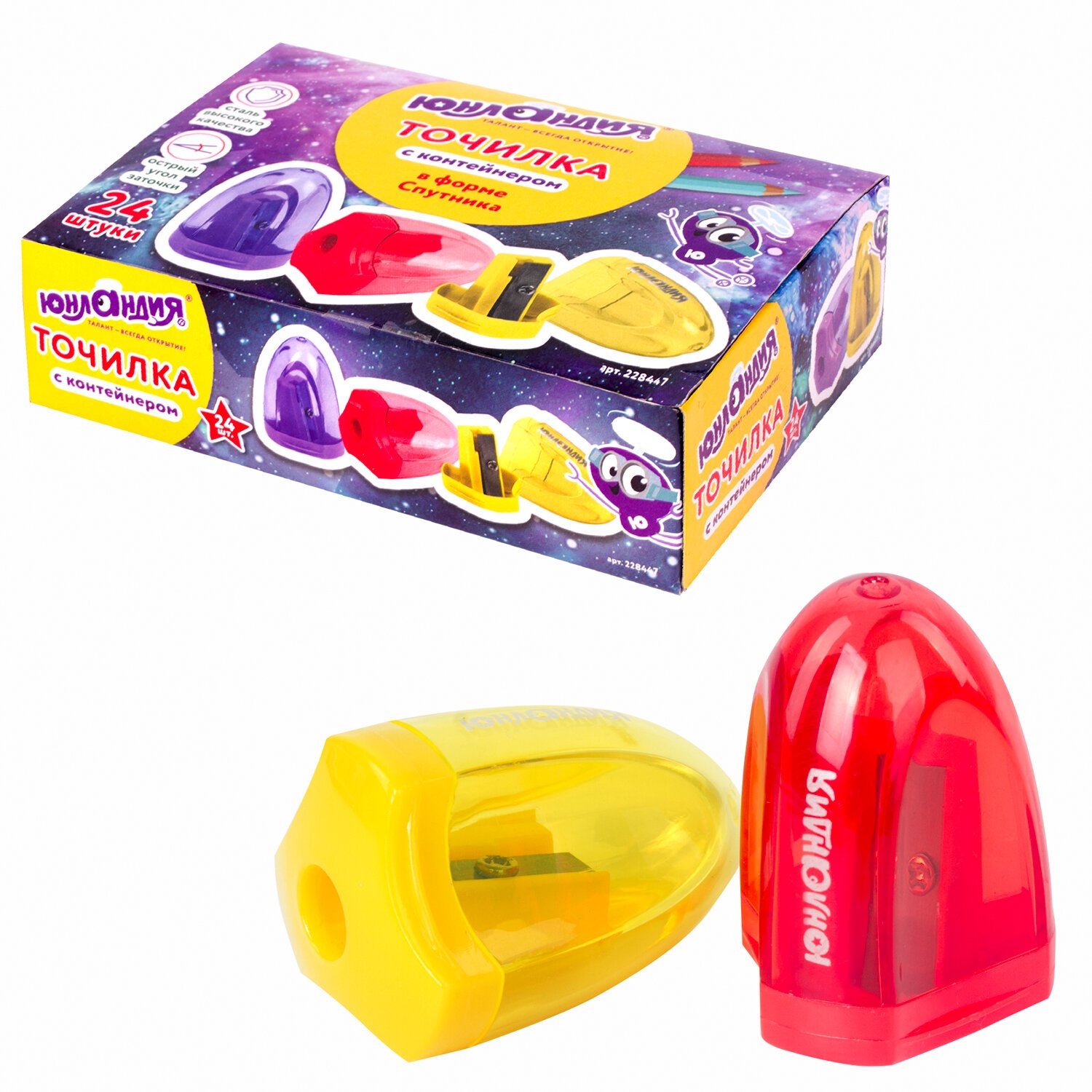Точилка ЮНЛАНДИЯ "Спутник", с контейнером, пластиковая, корпус ассорти, 228447