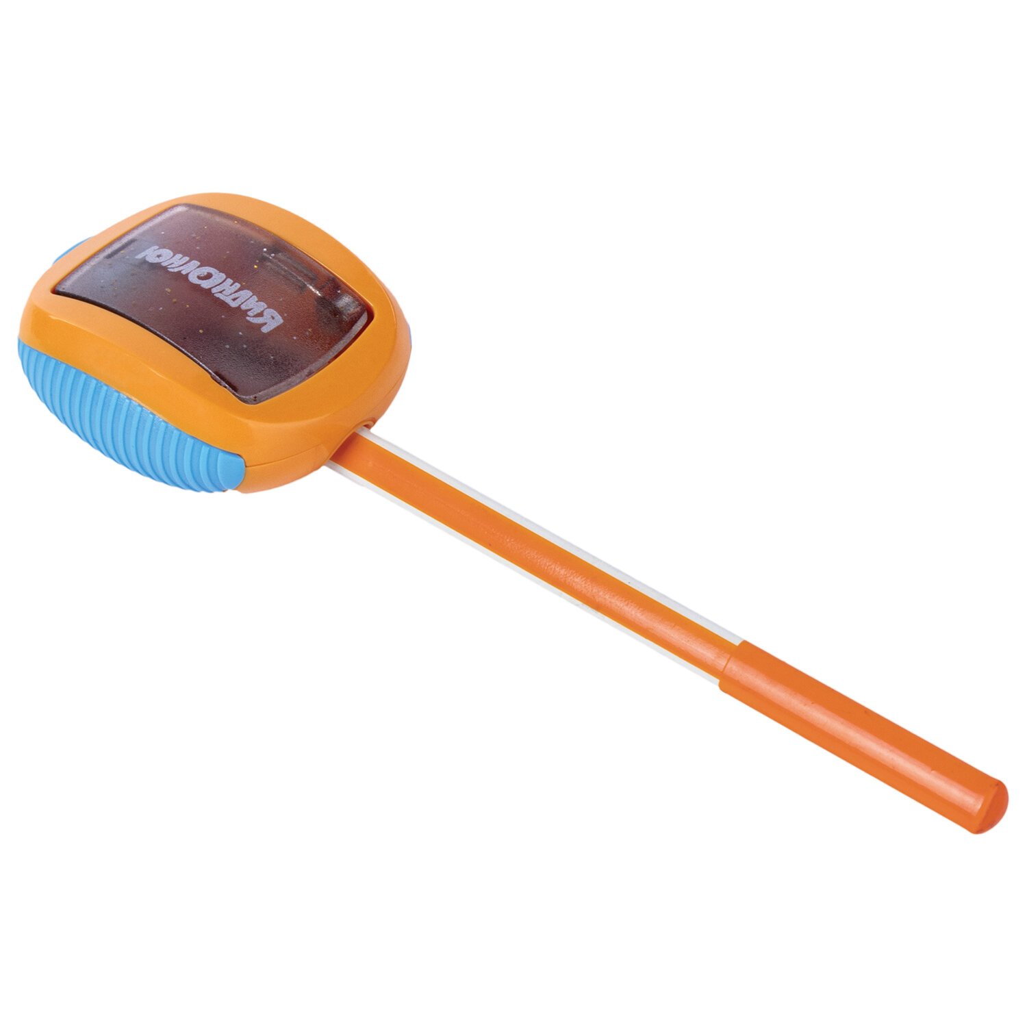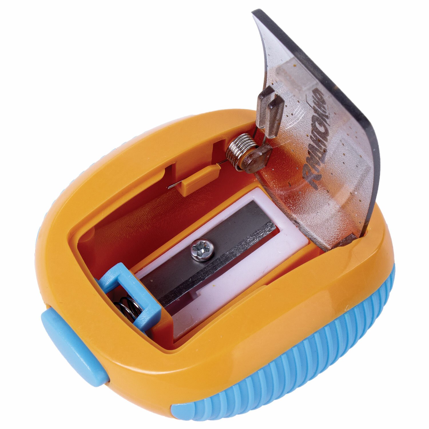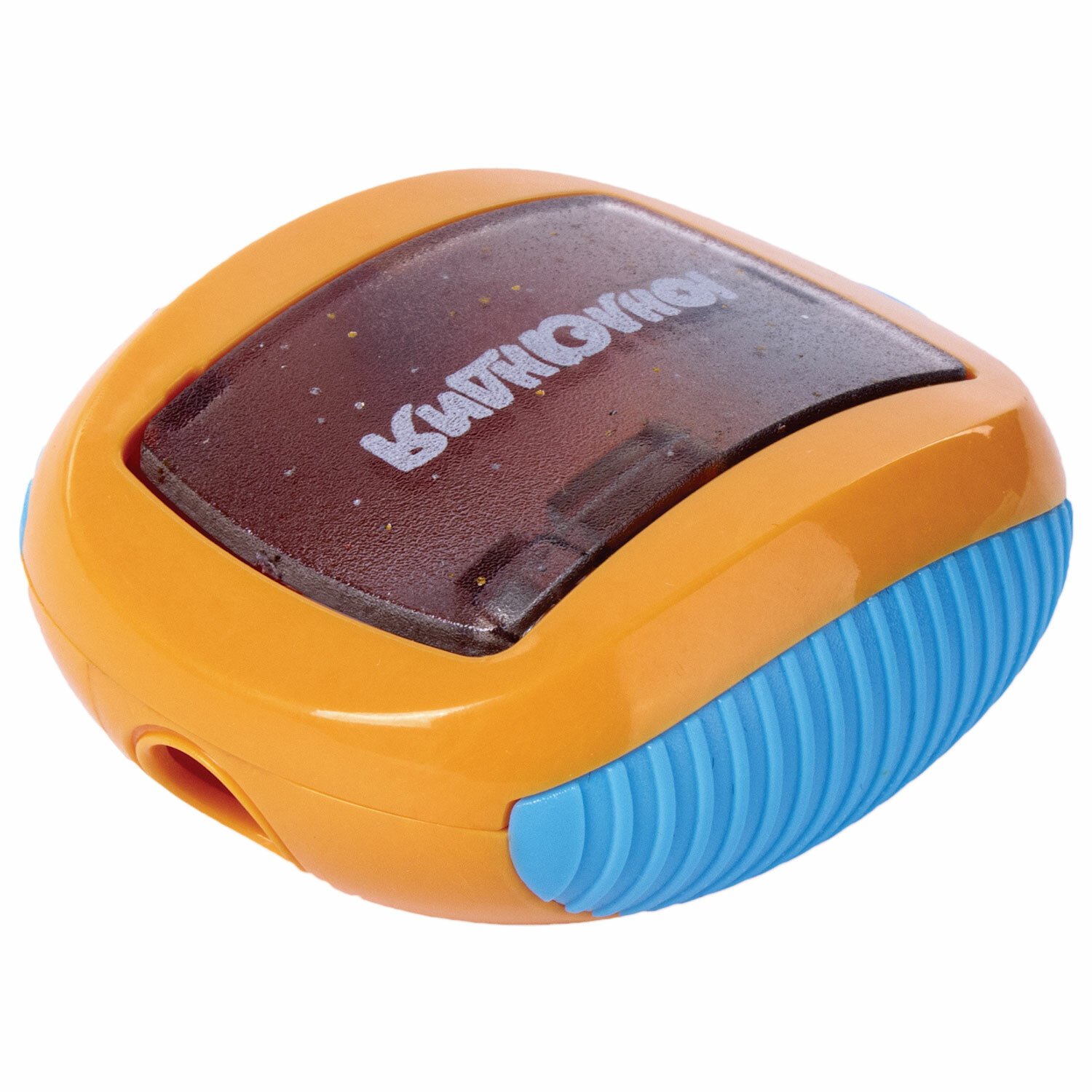 Эргономичный корпус в форме звездолёта выполнен из пластика. Удобная кнопка открытия крышки контейнера. Острое стальное лезвие обеспечивает быструю и легкую заточку. Карандаш затачивается аккуратно, а опилки остаются в специальном контейнере. Размер - 54х42х19 мм.