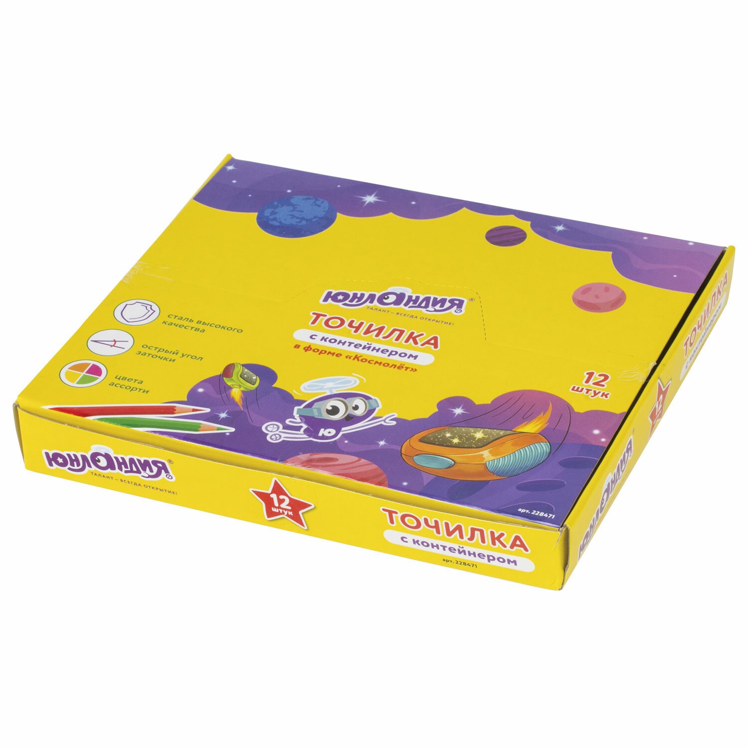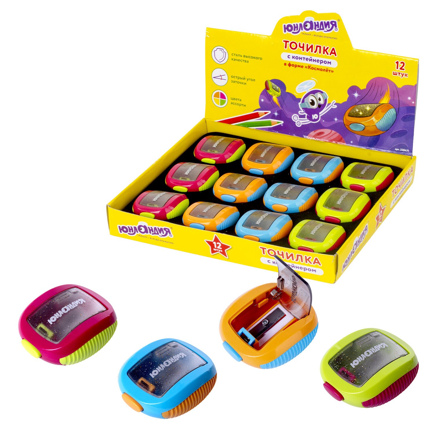 Точилка ЮНЛАНДИЯ "Звездолет Юнландика", с контейнером, пластиковая, корпус ассорти, 228471
