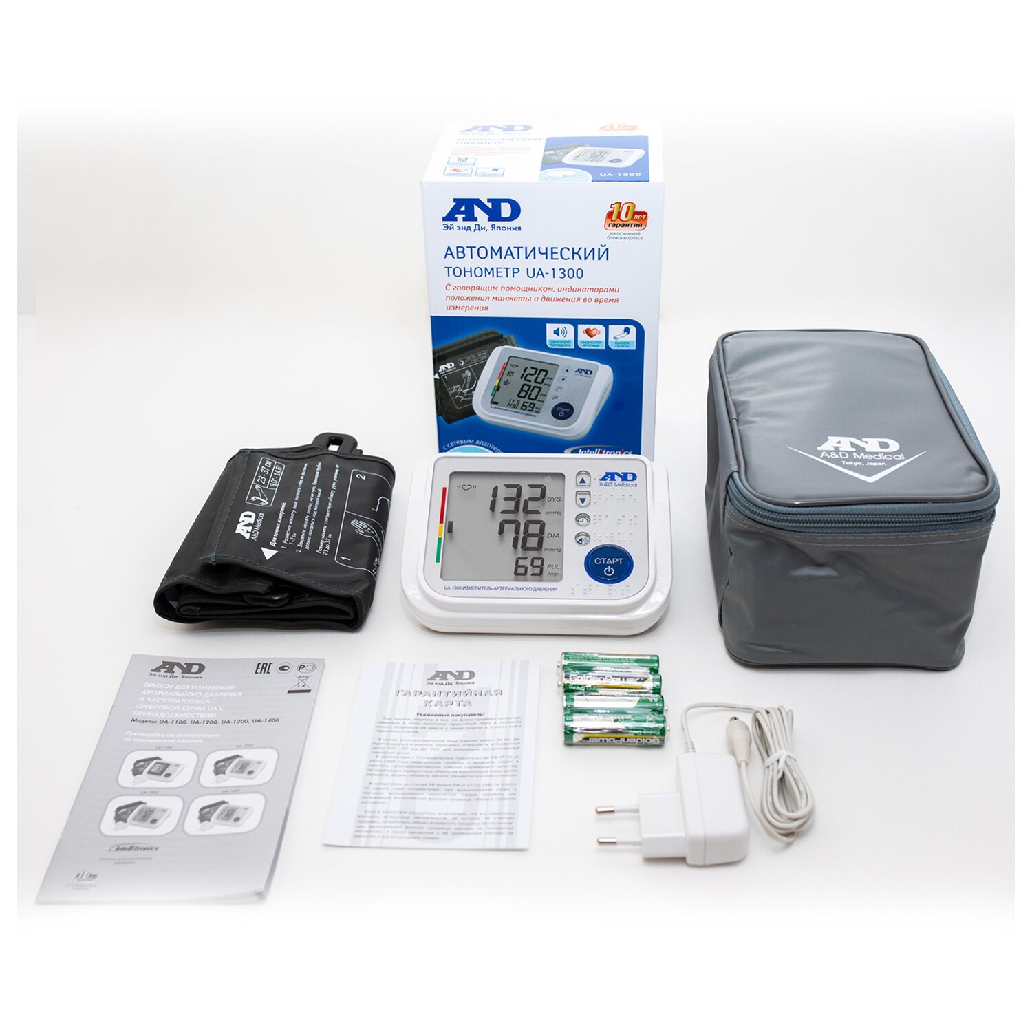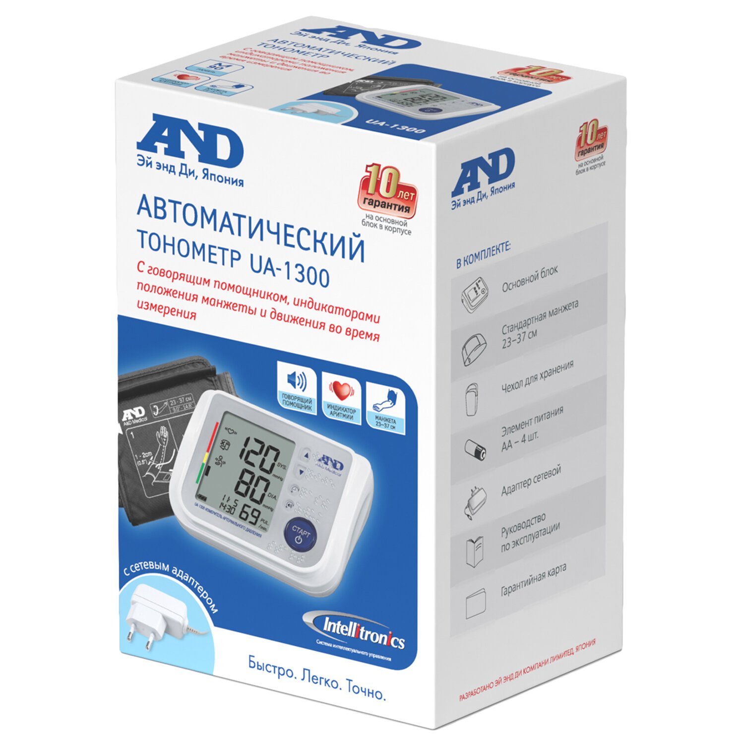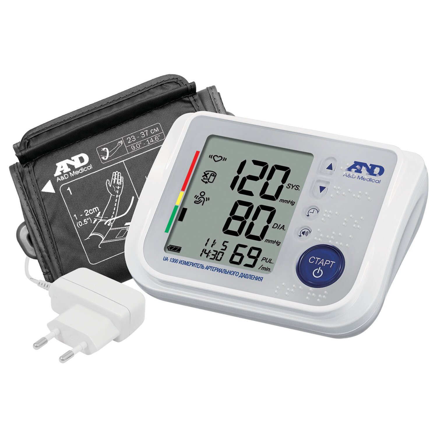 Цифровой прибор для измерения артериального давления и частоты пульса, тонометр AND UA-1300, с манжетой нового поколения AND Opti Cuff для рук с длиной окружности плеча 23 - 37 см. и сетевым адаптером - современная модель, которая предназначена для применения в качестве индивидуального средства контроля артериального давления и частоты пульса, а также для динамических наблюдений за этими параметрами в медицинских учреждениях.