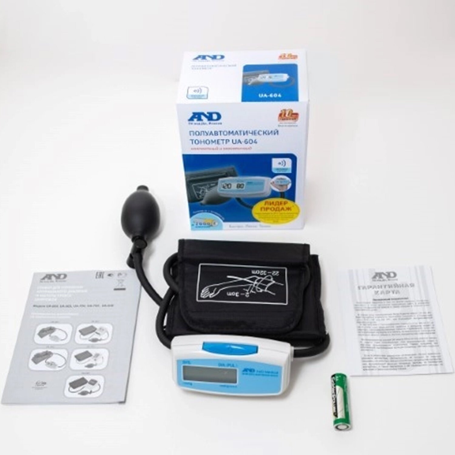 Полуавтоматический тонометр AND UA-604 с манжетой на плечо (22 - 32 см.) является полуавтоматическим цифровым прибором для измерения артериального давления и частоты пульса на плечевой зоне. Нагнетания воздуха в манжету - ручное при помощи специальной груши.
