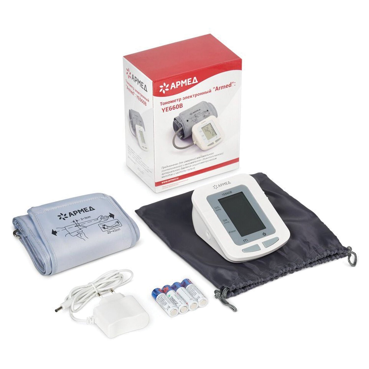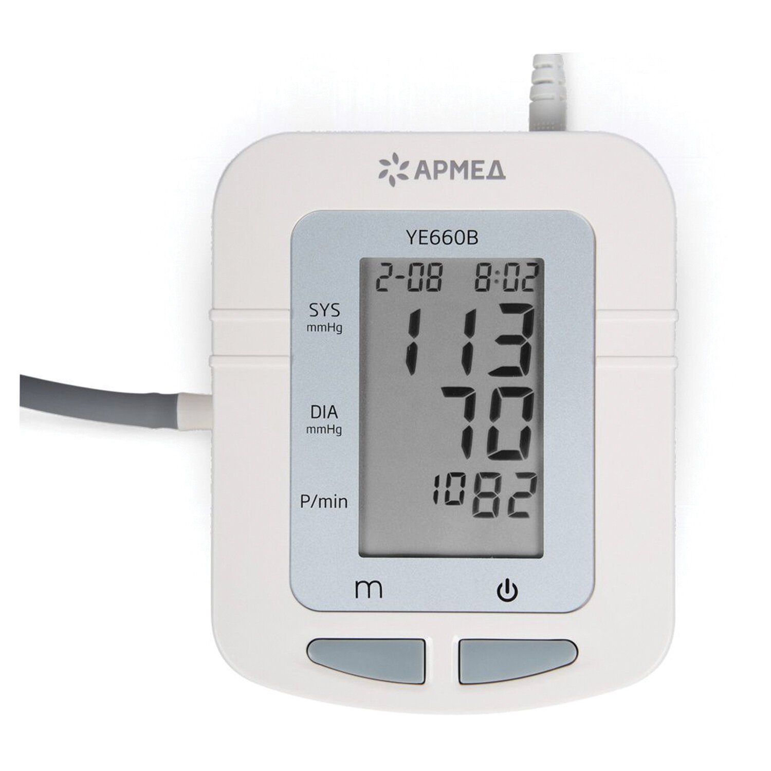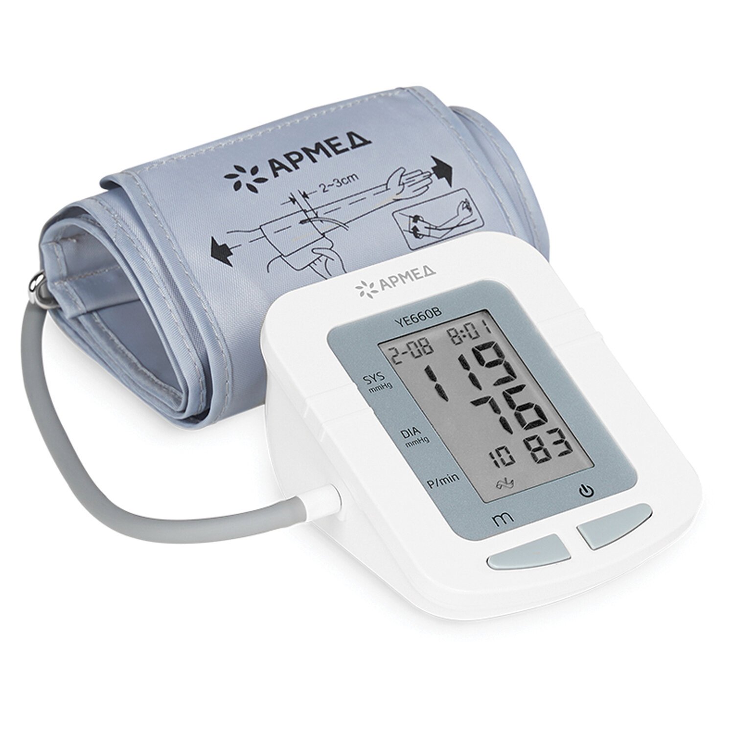 Тонометр АРМЕД YE660B, диапазон давления 0-280 мм рт. ст., диапазон пульса 40-200 уд/мин, автоматический, с поверкой, 1977602