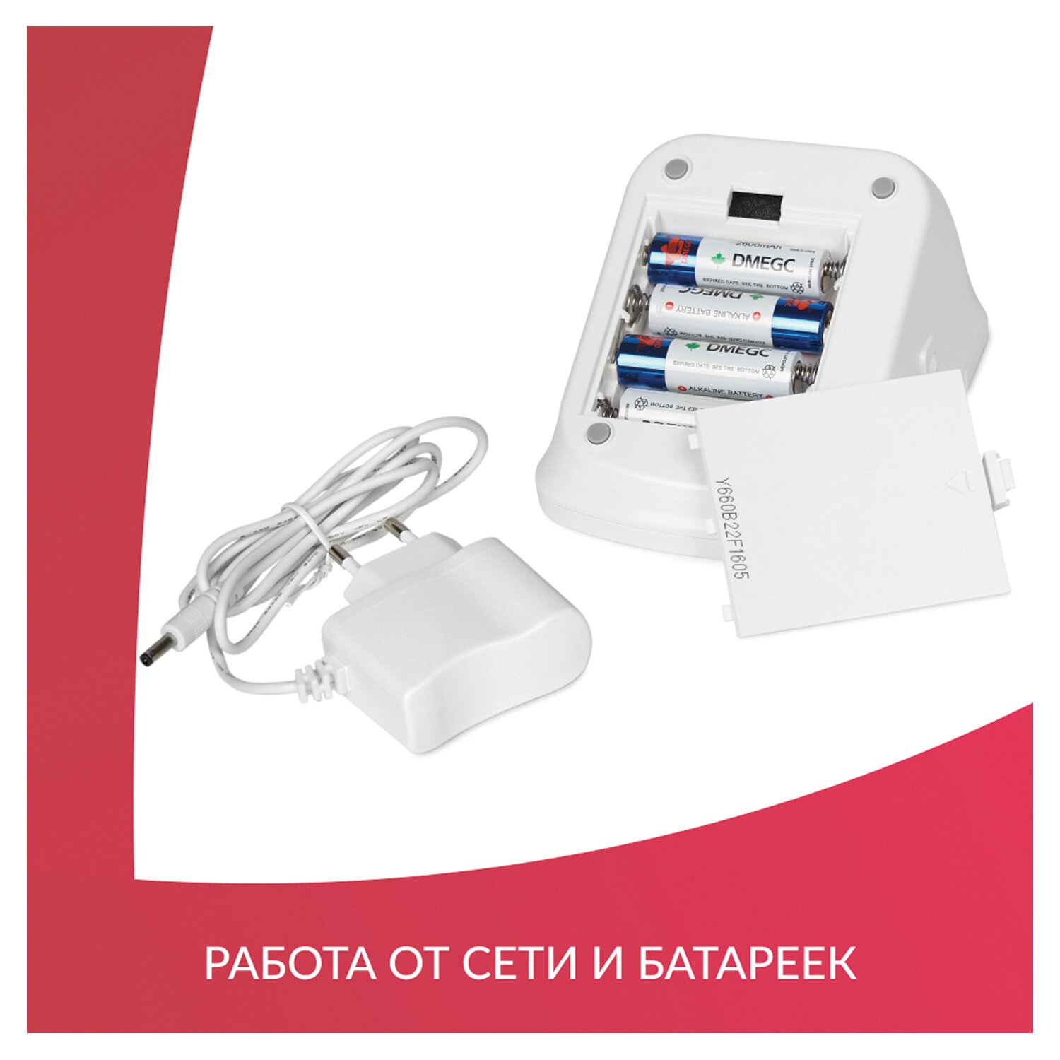 Тонометр может работать как от сети, так и от батареек, поэтому прибор можно брать в дорогу.
