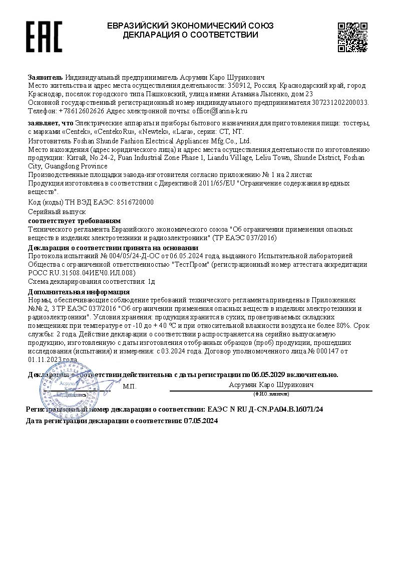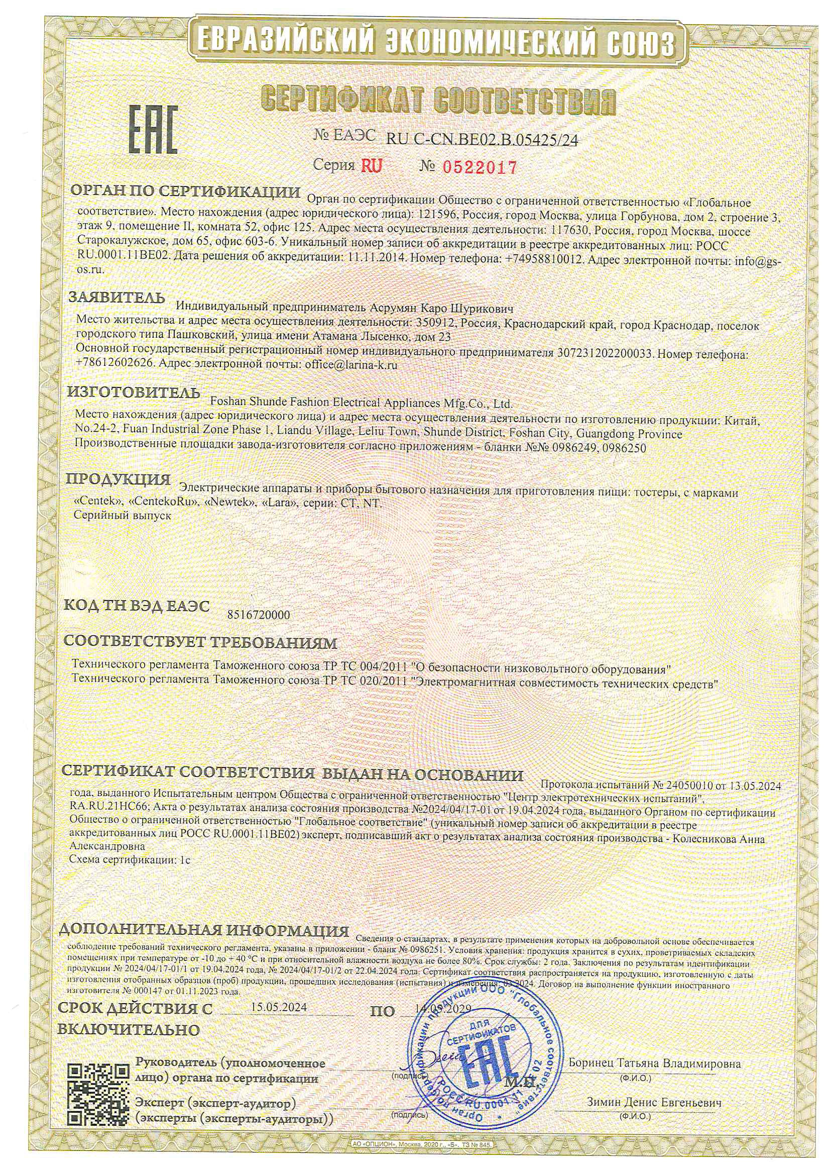 Удобный поворотный переключатель, выдвижной поддон для крошек и отсек для хранения шнура обеспечивают максимальный комфорт в использовании.