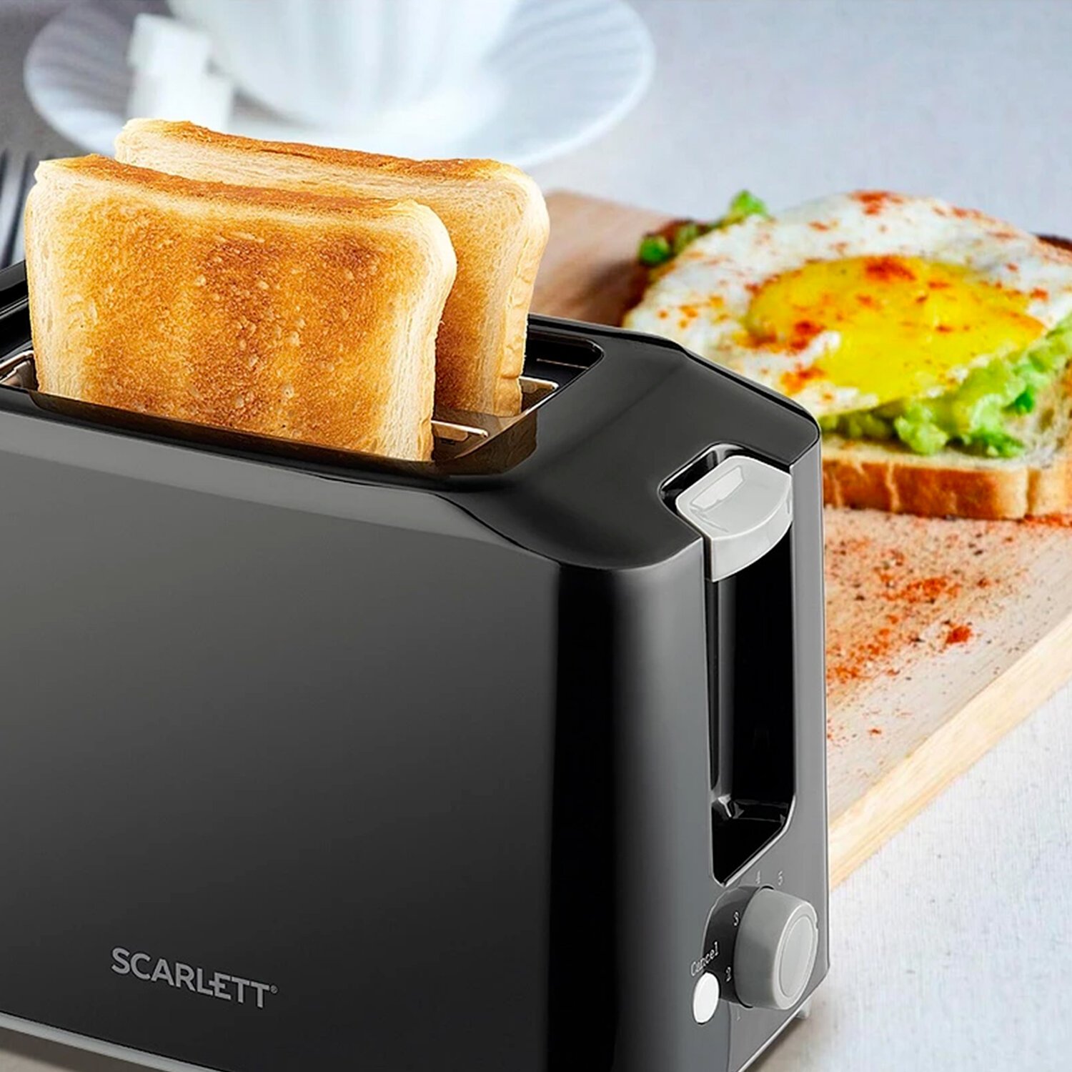 Тостер SCARLETT SC-TM11020, 700 Вт, 2 тоста, 7 режимов, механическое управление, пластик, черный
