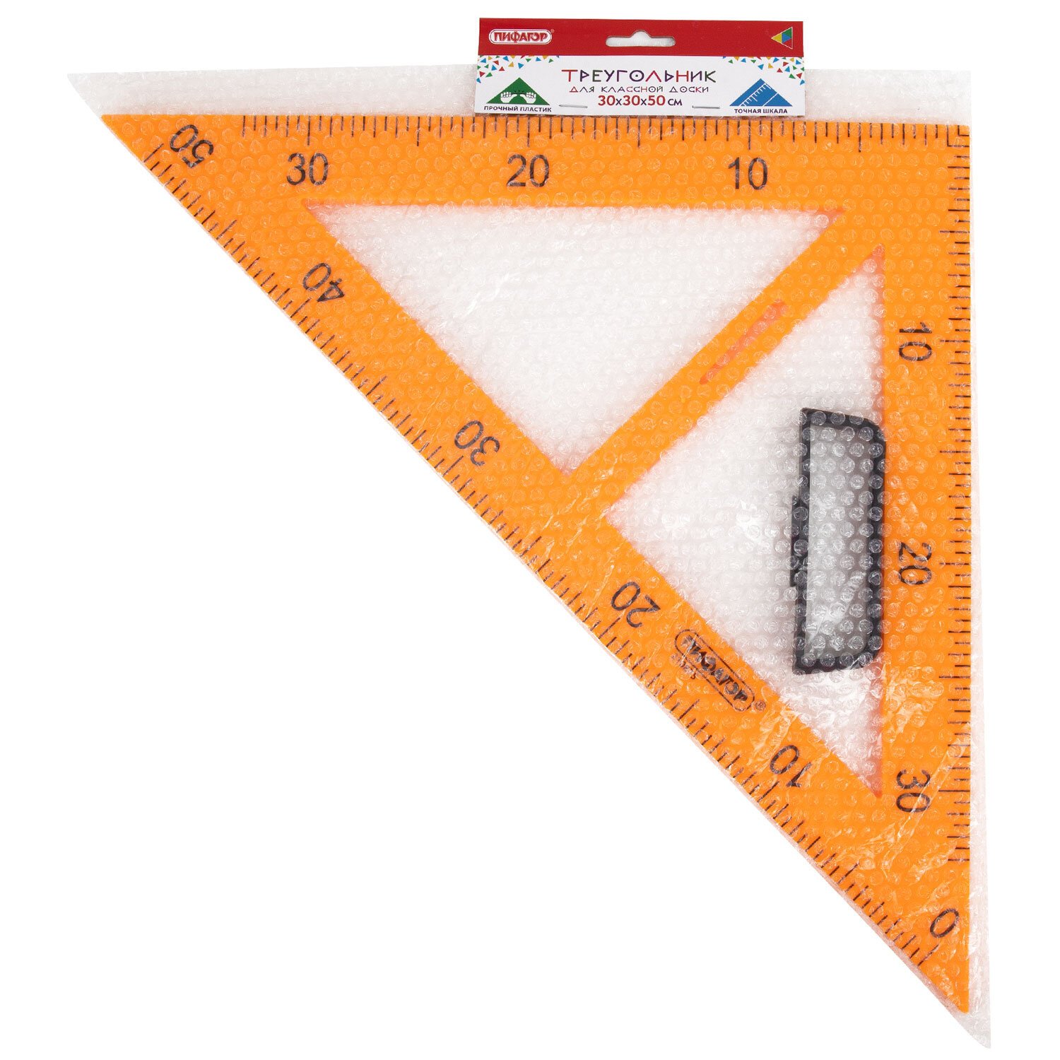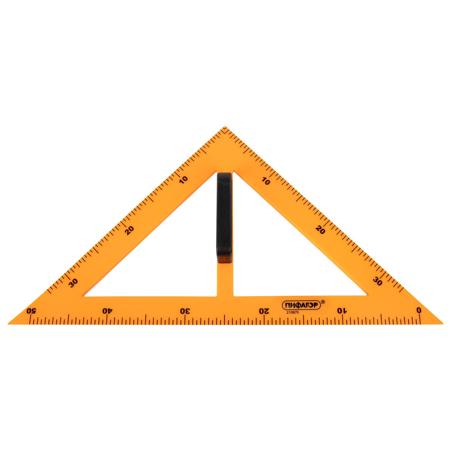 Треугольник прямоугольный для классной доски, пластиковый 30х30х50см, с держателем, ПИФАГОР, 210875