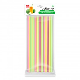Трубочки для коктейлей прямые пластиковые 8х240мм, цветные, КОМПЛЕКТ 50 шт, GRIFON, ШК1036, 105-103