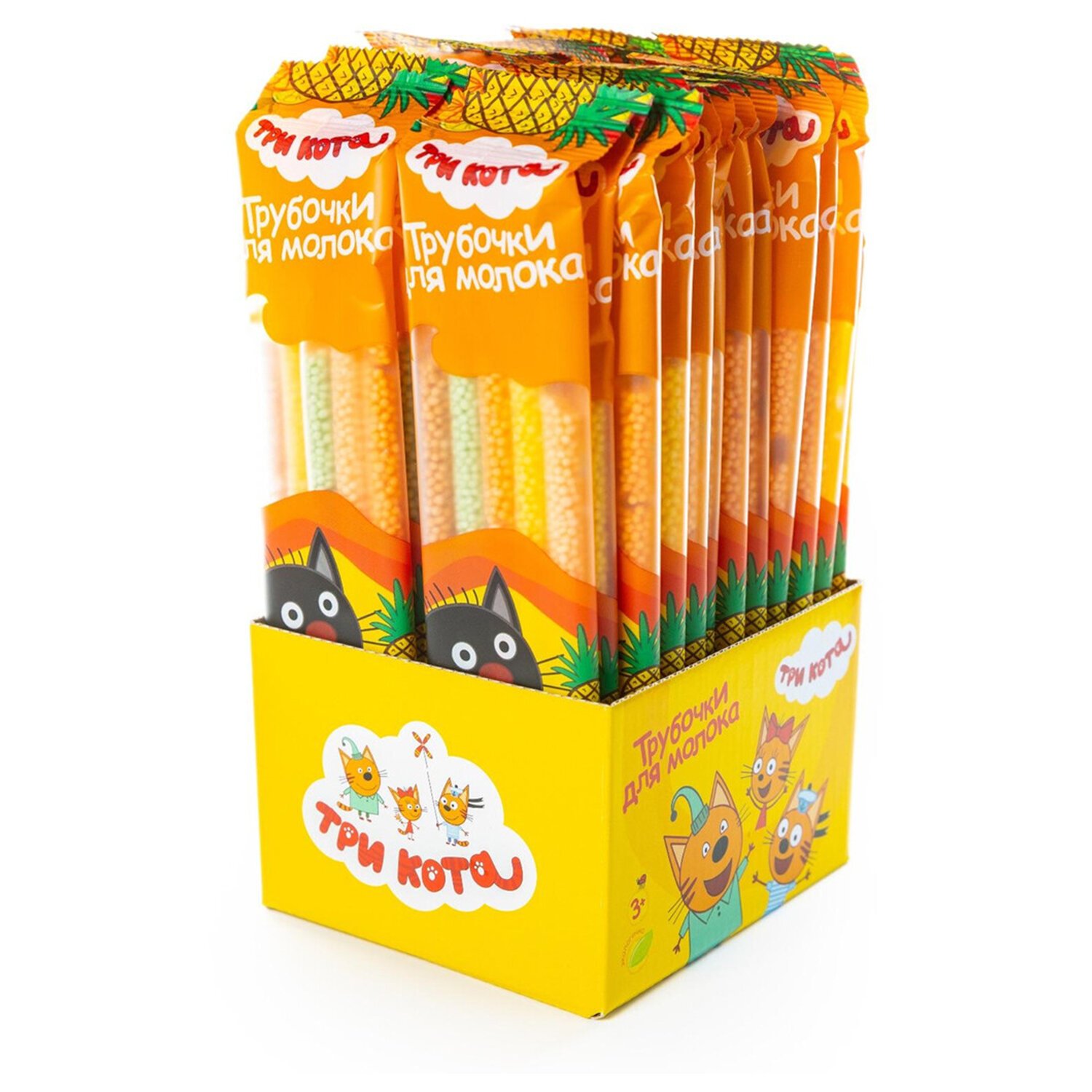 Трубочки для молока "Три кота" со вкусом фруктовый микс, 24 шт по 24 г