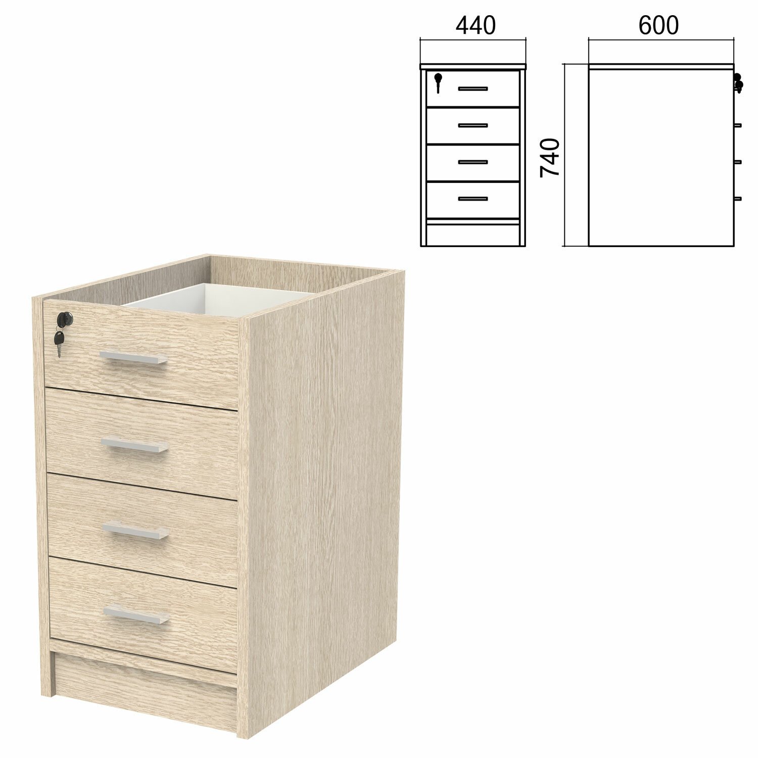 Тумба приставная "Арго", 440х600х760 мм, 4 ящика, замок, ясень шимо (КОМПЛЕКТ)