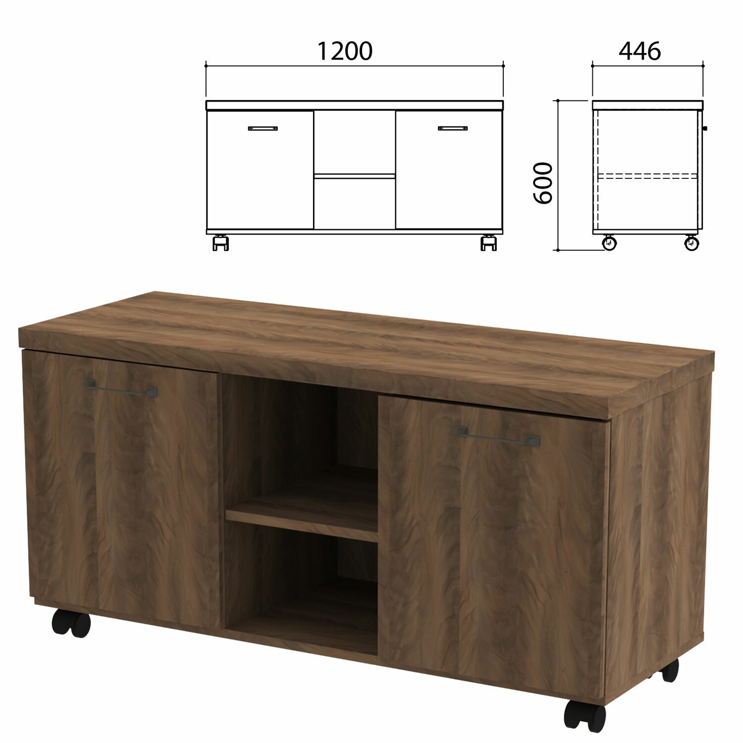 Тумба для оргтехники "Приоритет", 722х446х676 мм, 2 двери, полка, кронберг, К-928, К-928 кронберг