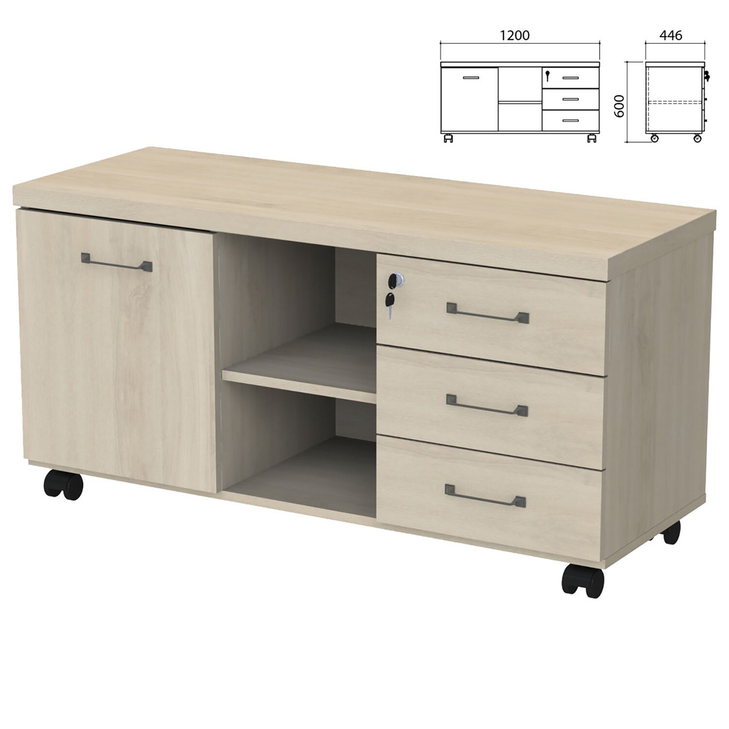 Тумба-креденция "Приоритет" 1200х446х600 мм, дверь, 3 ящика, кронберг (КОМПЛЕКТ)