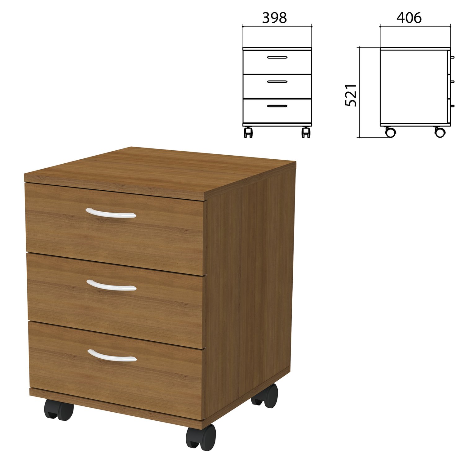 Тумба подкатная "Бюджет", 398х406х521 мм, 3 ящика, орех французский, 402952-190