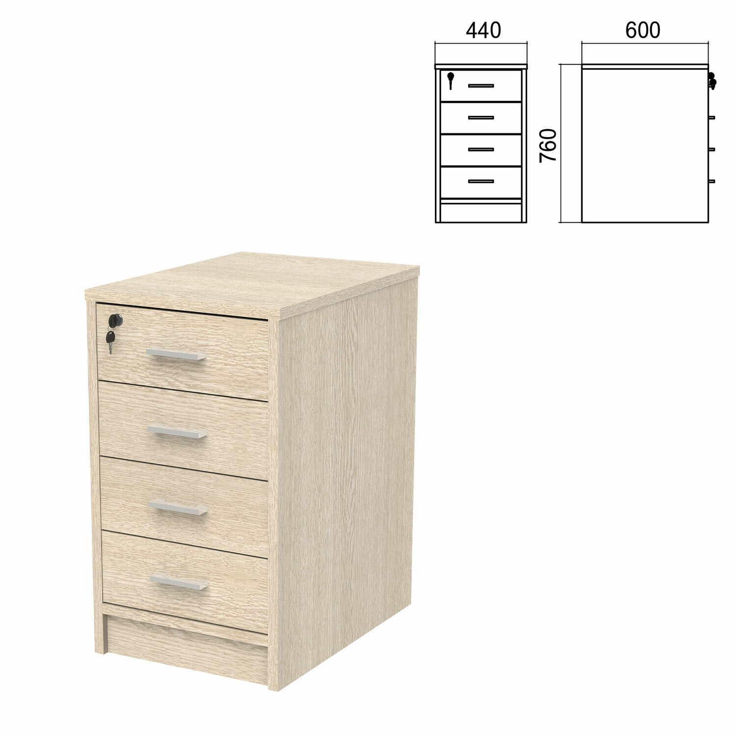 Тумба приставная "Арго", 440х600х760 мм, 4 ящика, замок, ясень шимо (КОМПЛЕКТ)