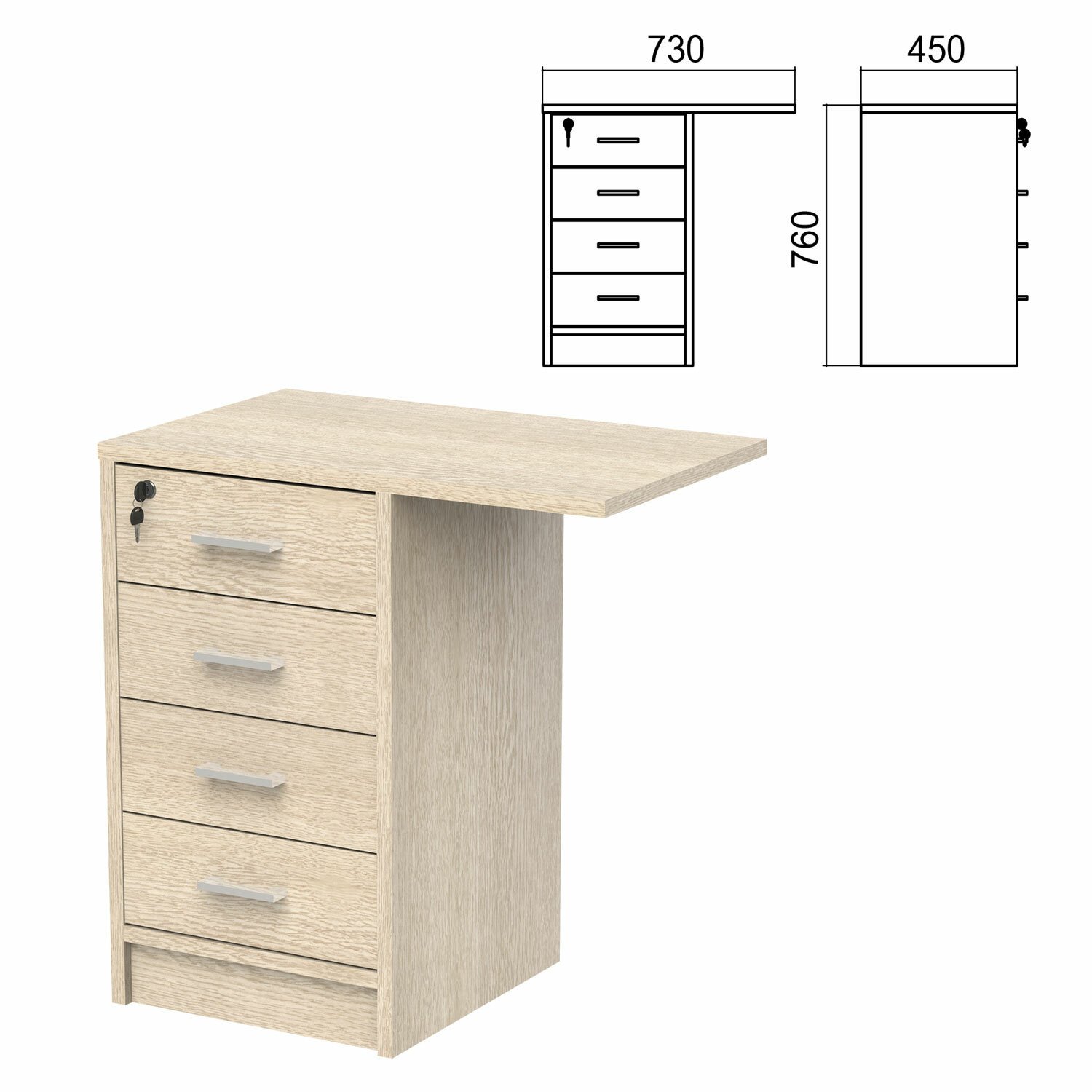 Тумба приставная "Арго", 440х730х760 мм, 4 ящика, замок, ясень шимо (КОМПЛЕКТ)