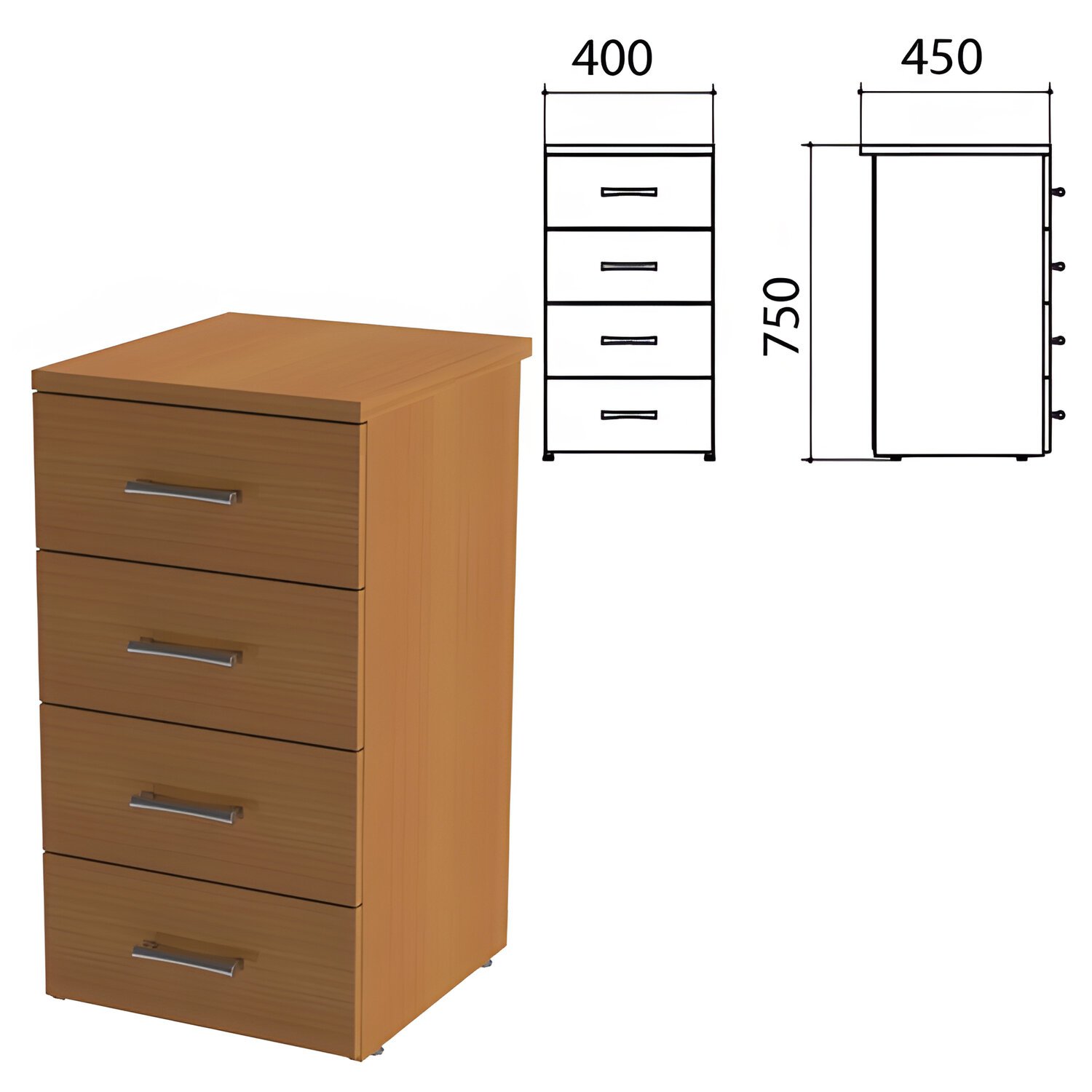 Тумба (каркас БЕЗ КРЫШКИ) приставная "Монолит", 400х595х728 мм, 4 ящика, орех гварнери, ТМ06.3