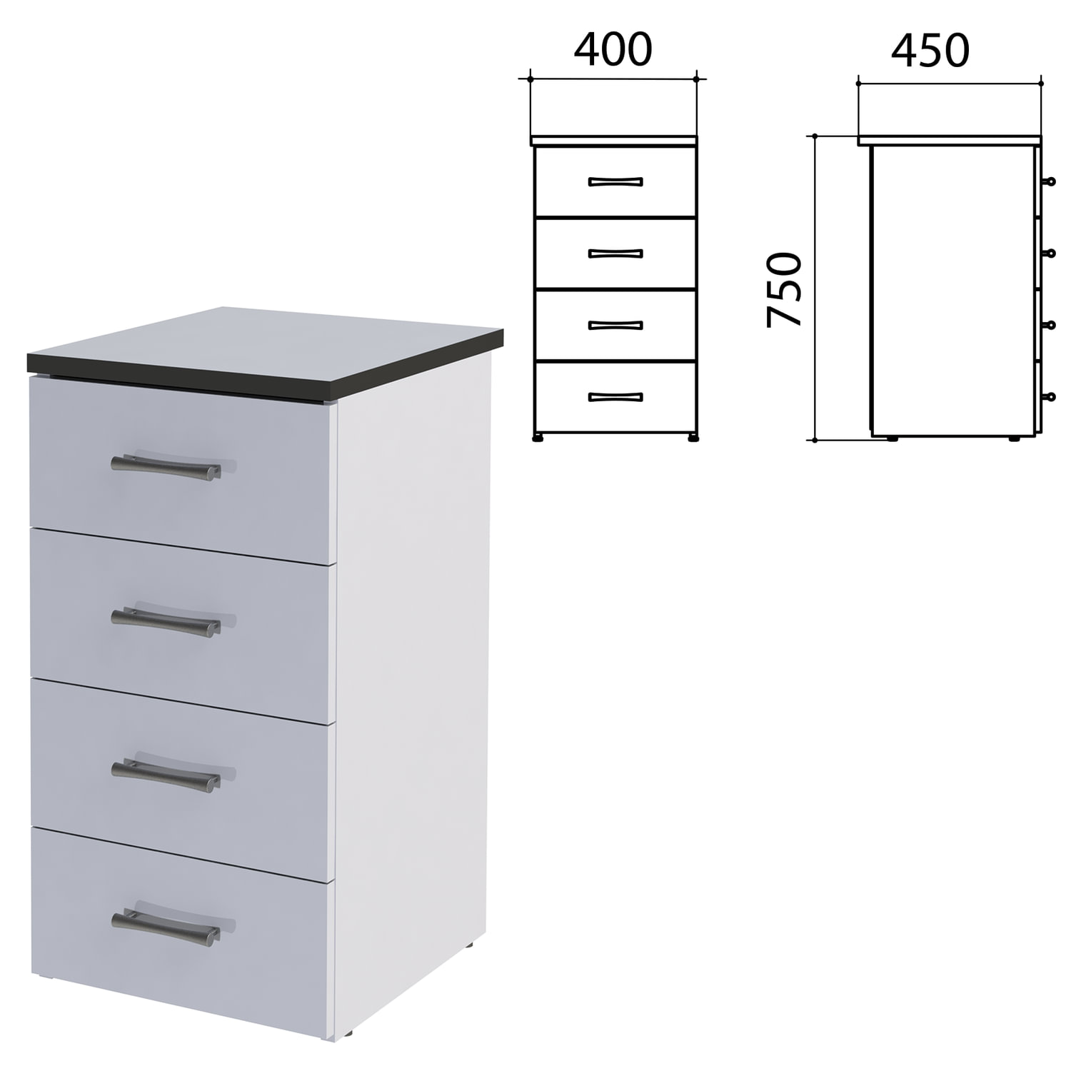 Тумба (каркас БЕЗ КРЫШКИ) приставная "Монолит", 400х595х728 мм, 4 ящика, серая, ТМ06.11