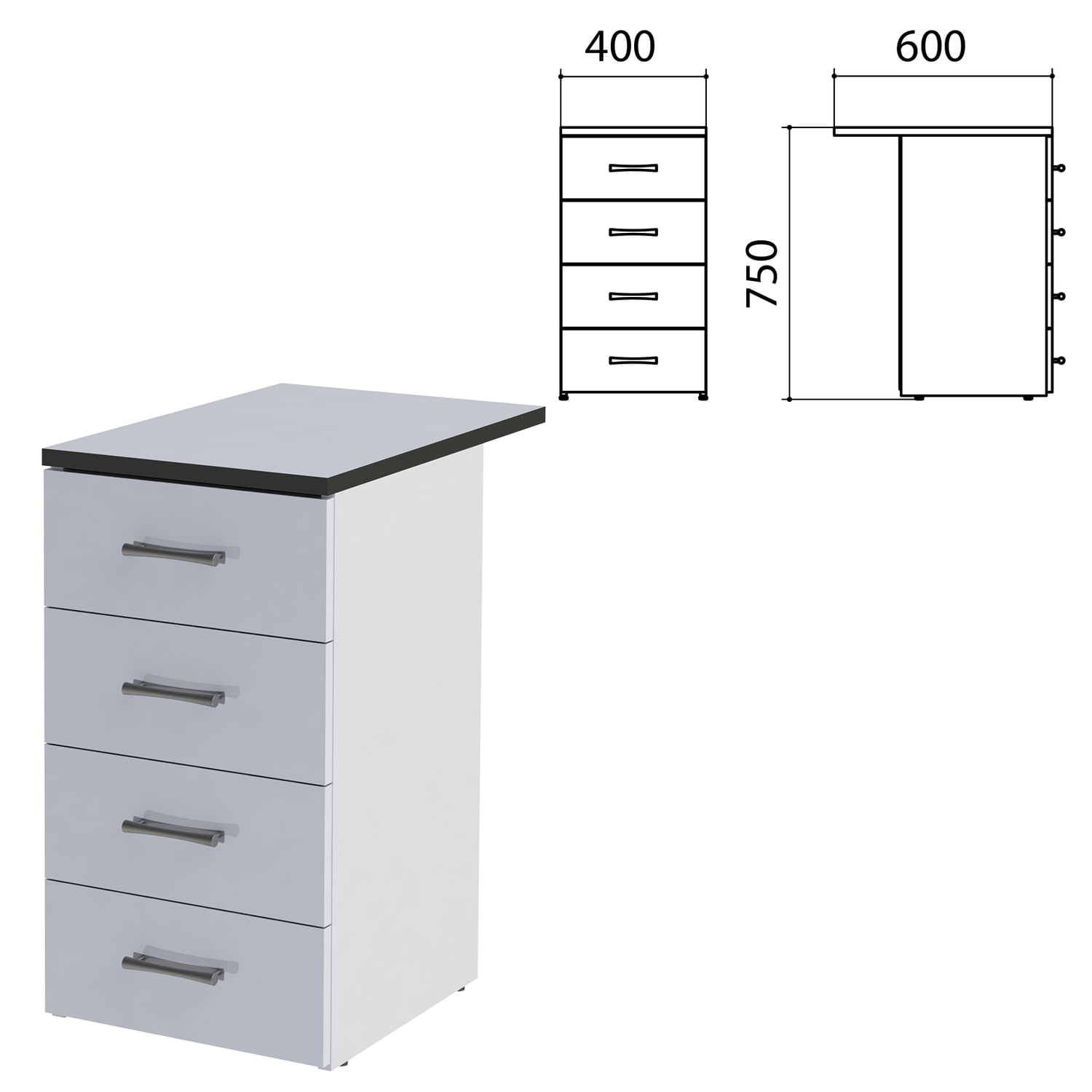 Тумба приставная "Монолит", 400х600х750 мм, цвет серый (КОМПЛЕКТ)