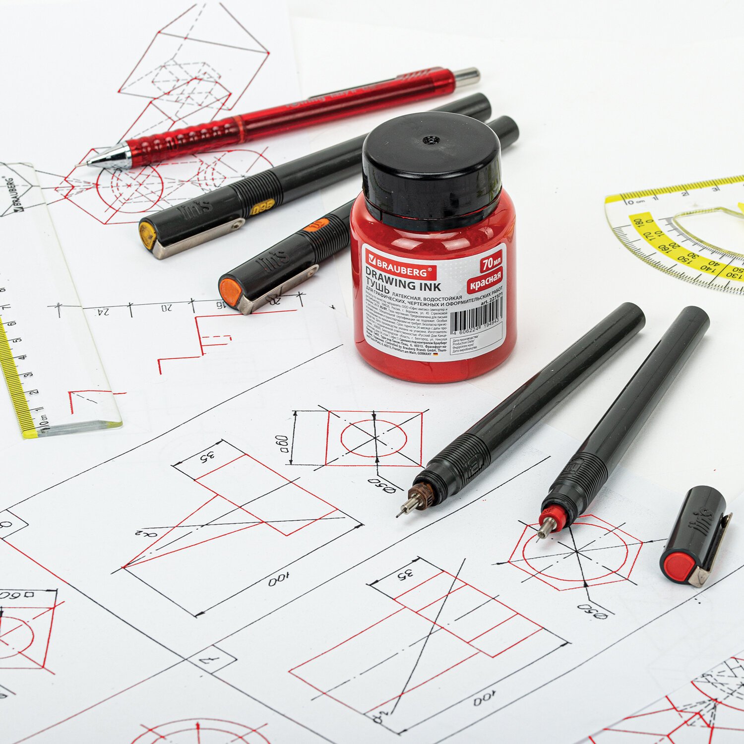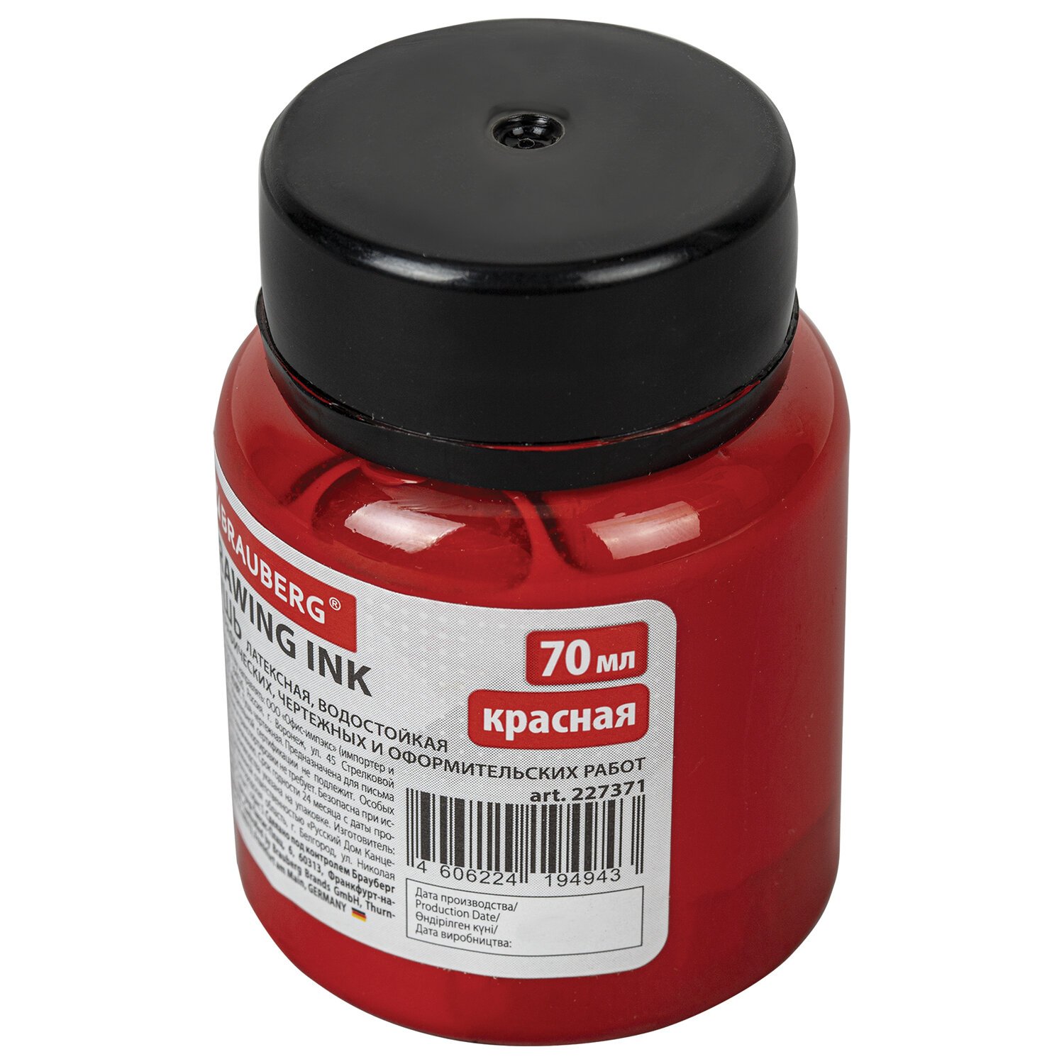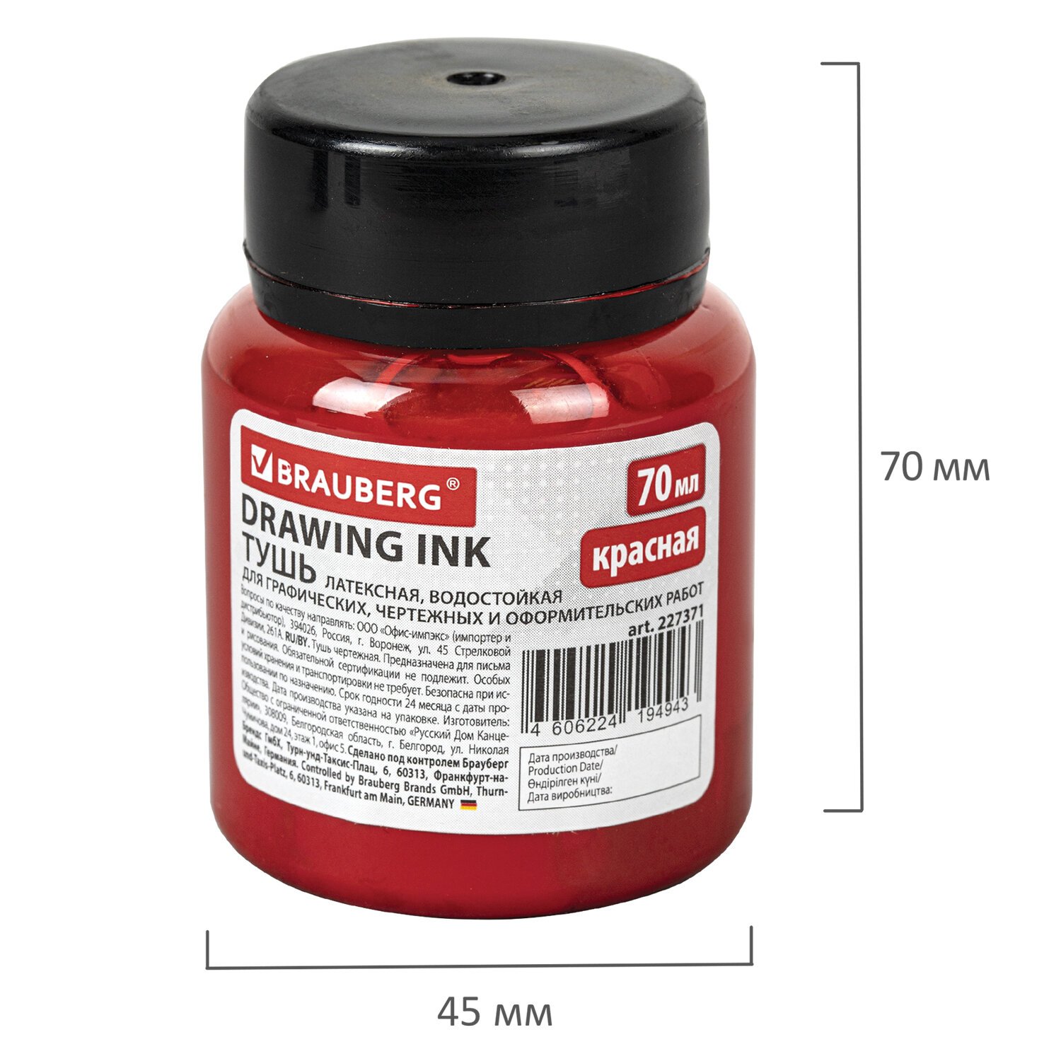 Тушь чертежная BRAUBERG, 70 мл, красная, водостойкая, латексная (черчение, графика, оформление), 227371