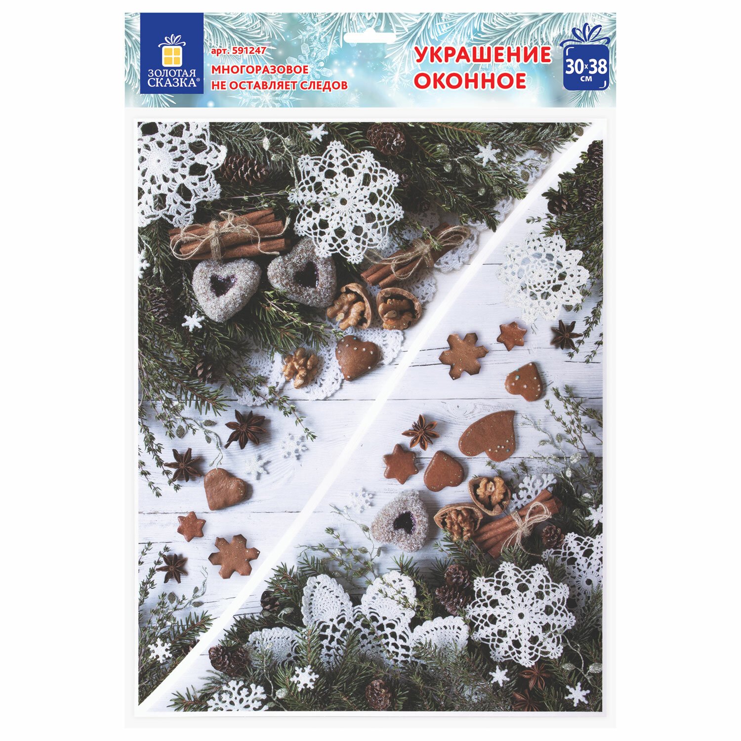 Украшение для окон и стекла ЗОЛОТАЯ СКАЗКА "Новогодняя композиция 1", 30х38 см, ПВХ, 591247