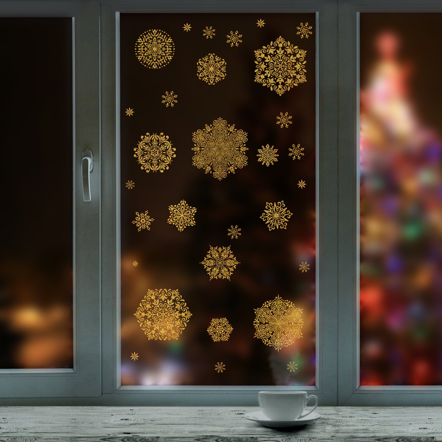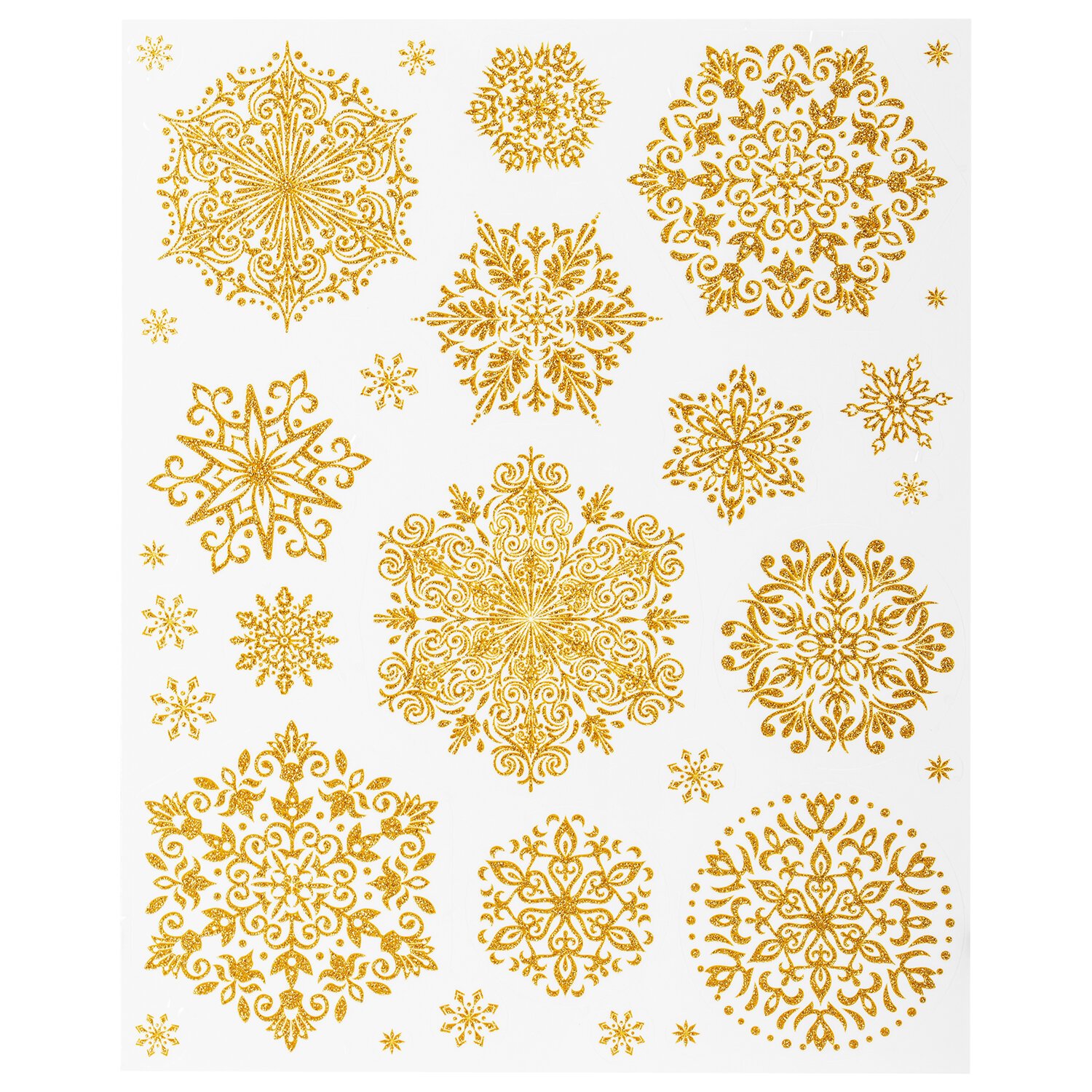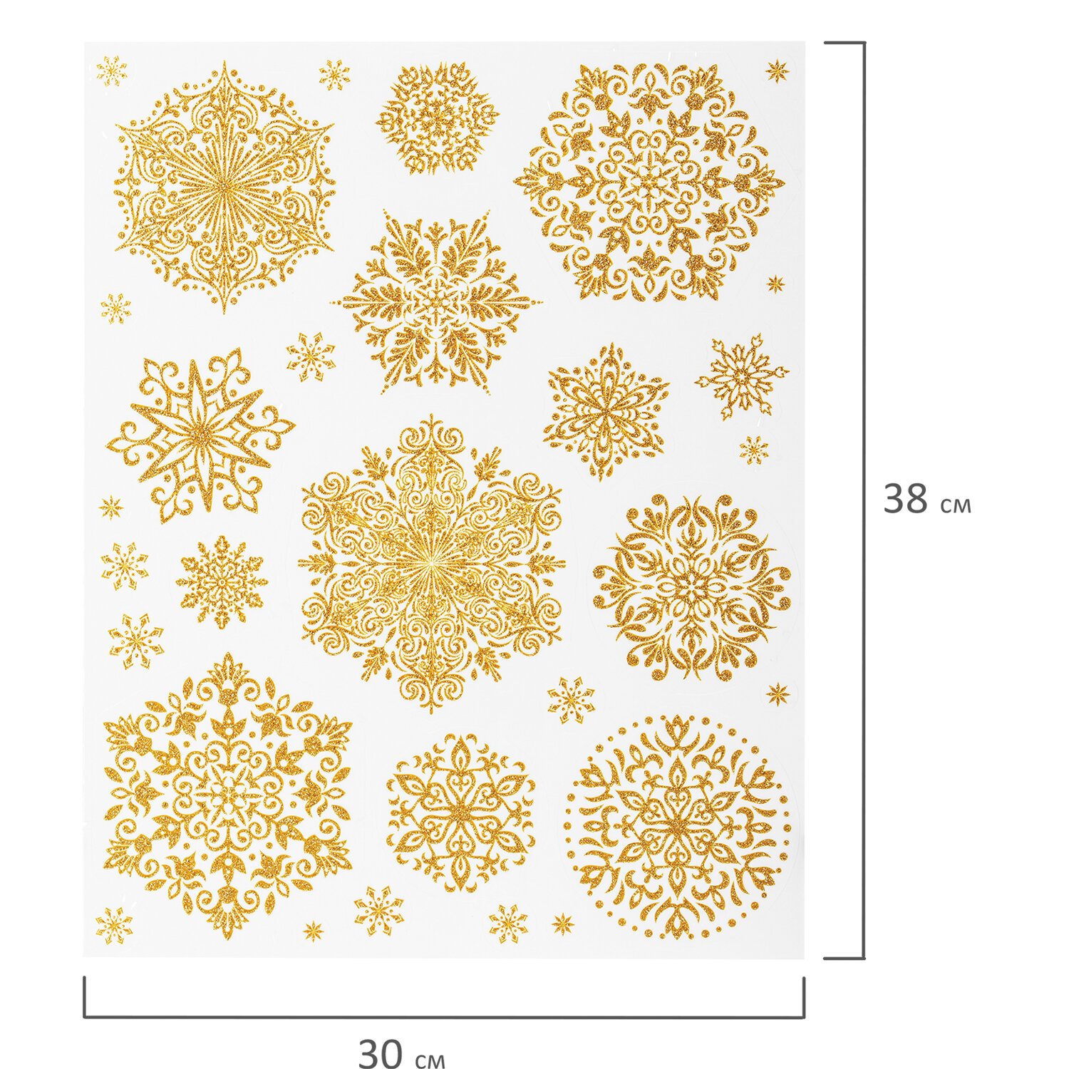 Украшение для окон и стекла ЗОЛОТАЯ СКАЗКА "Золотистые снежинки 3", 30х38 см, ПВХ, 591189