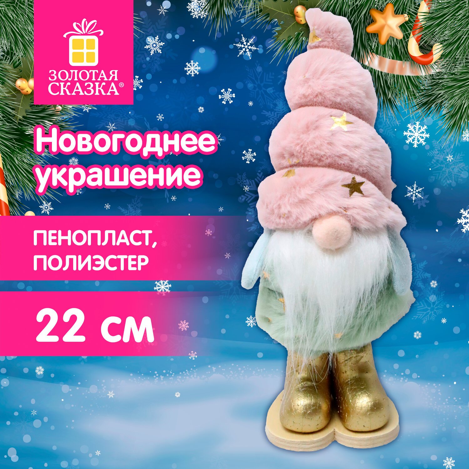 Украшение новогоднее интерьерное, 22см, "Пушистый гномик", полиэстер, пенопласт, ЗОЛОТАЯ СКАЗКА, 592564