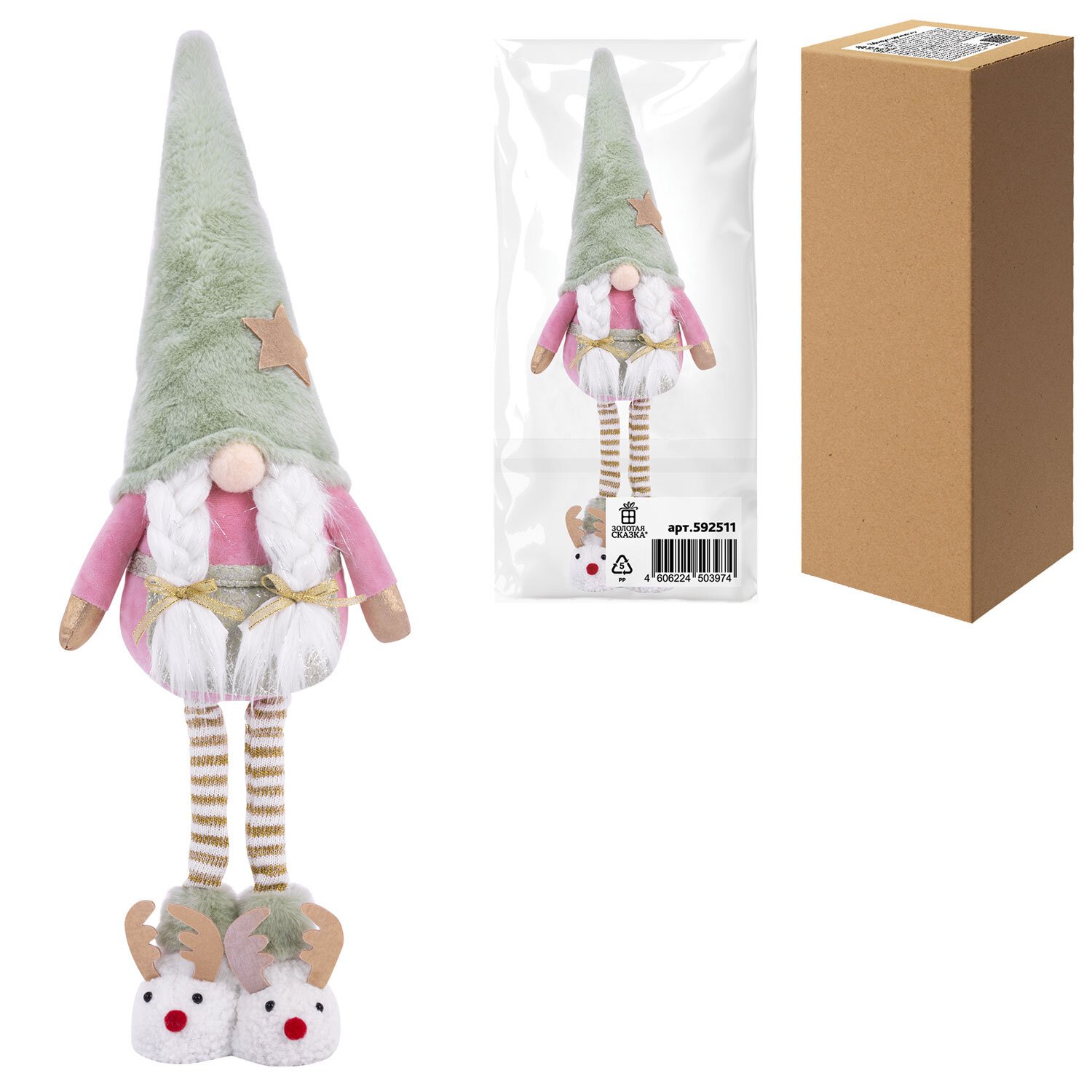 Украшение новогоднее интерьерное 64см "Гном в тапочках", полиэстер, ЗОЛОТАЯ СКАЗКА, 592511